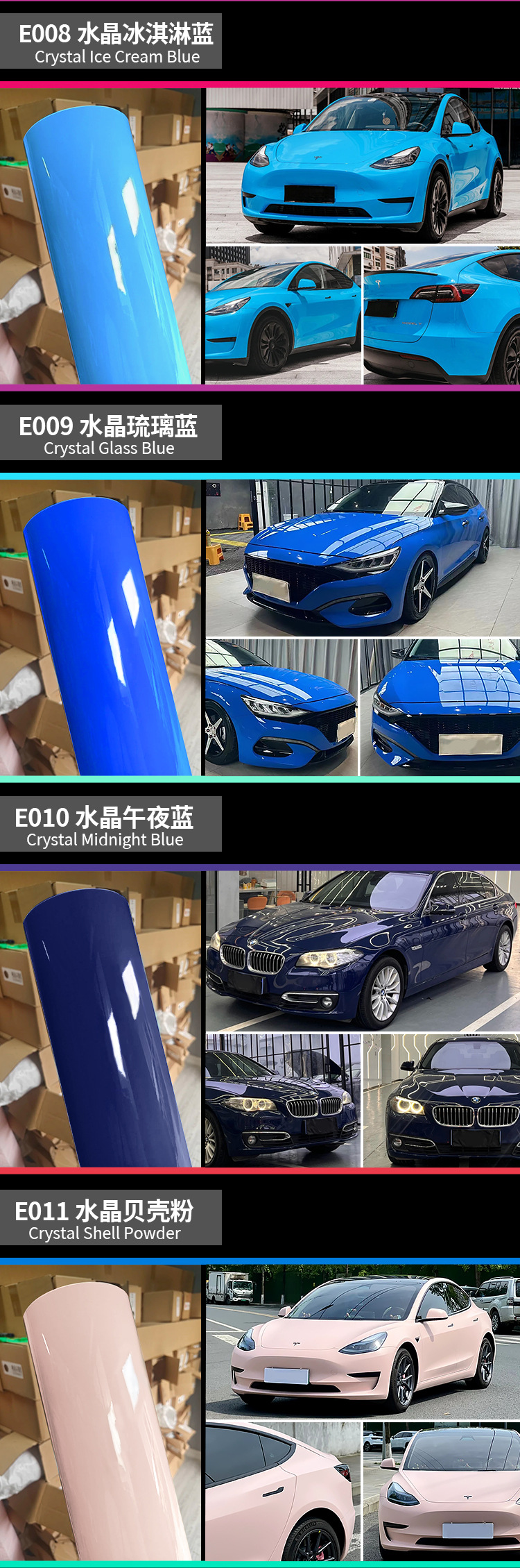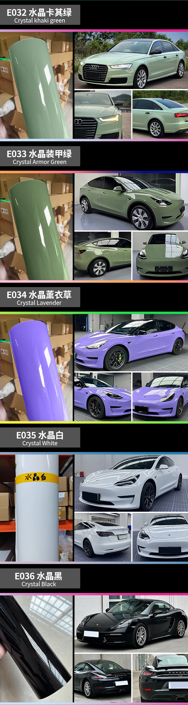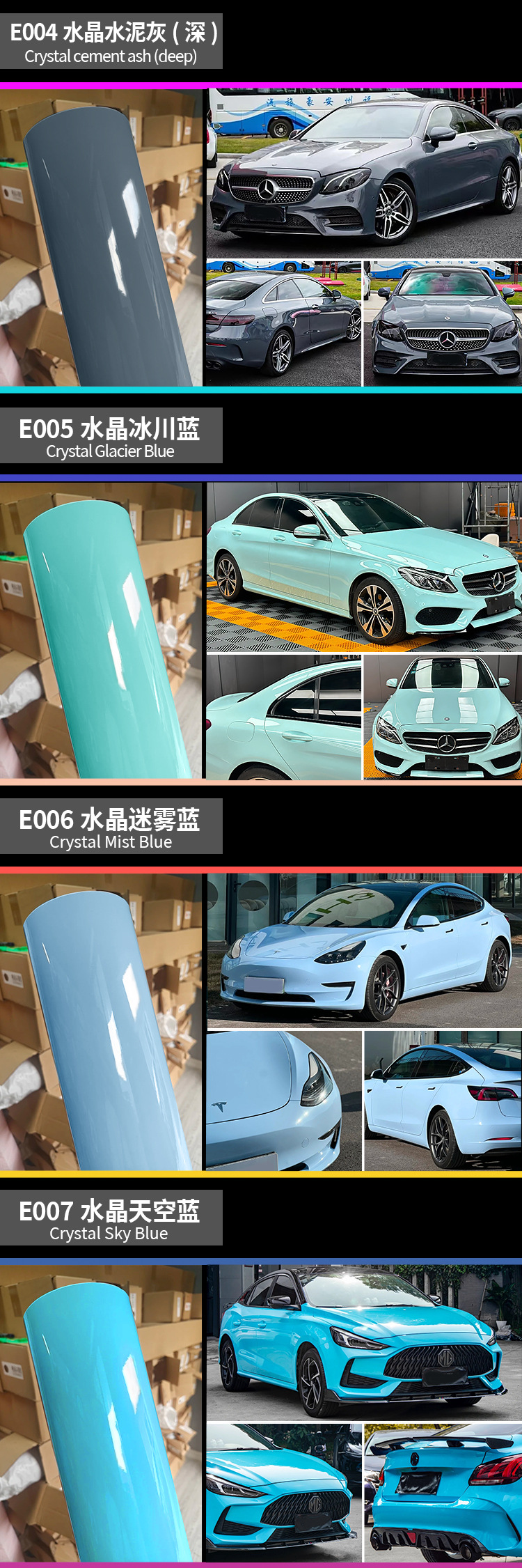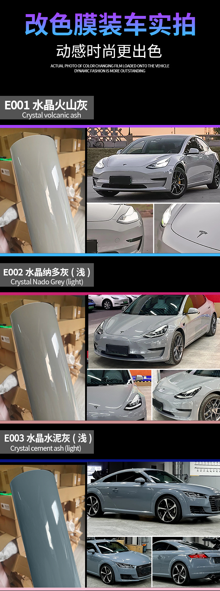 자동차 색상 변경 필름 애완 동물 크리스탈 흑백 나도 회색 빙하 블루 전신 색상 변경 보호 필름 색상 변경 필름 도매
