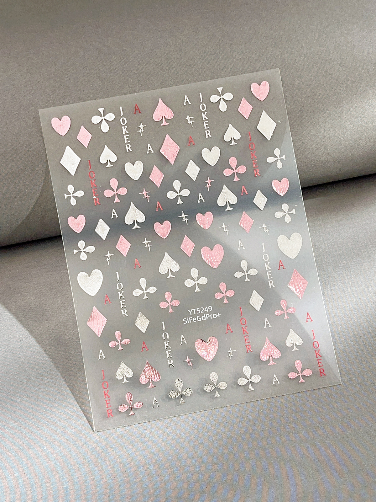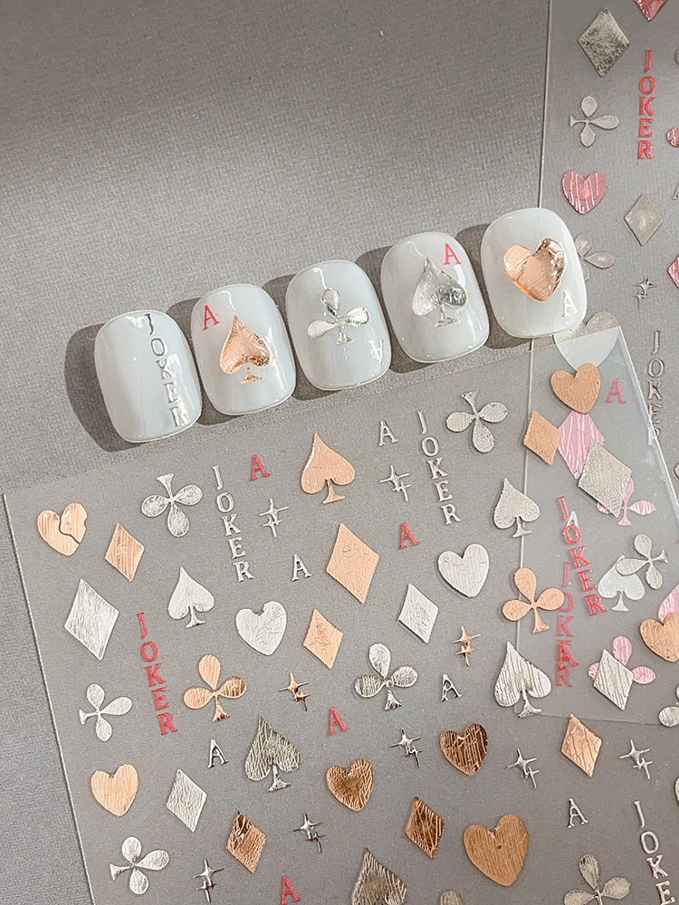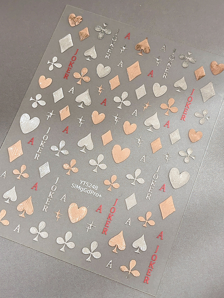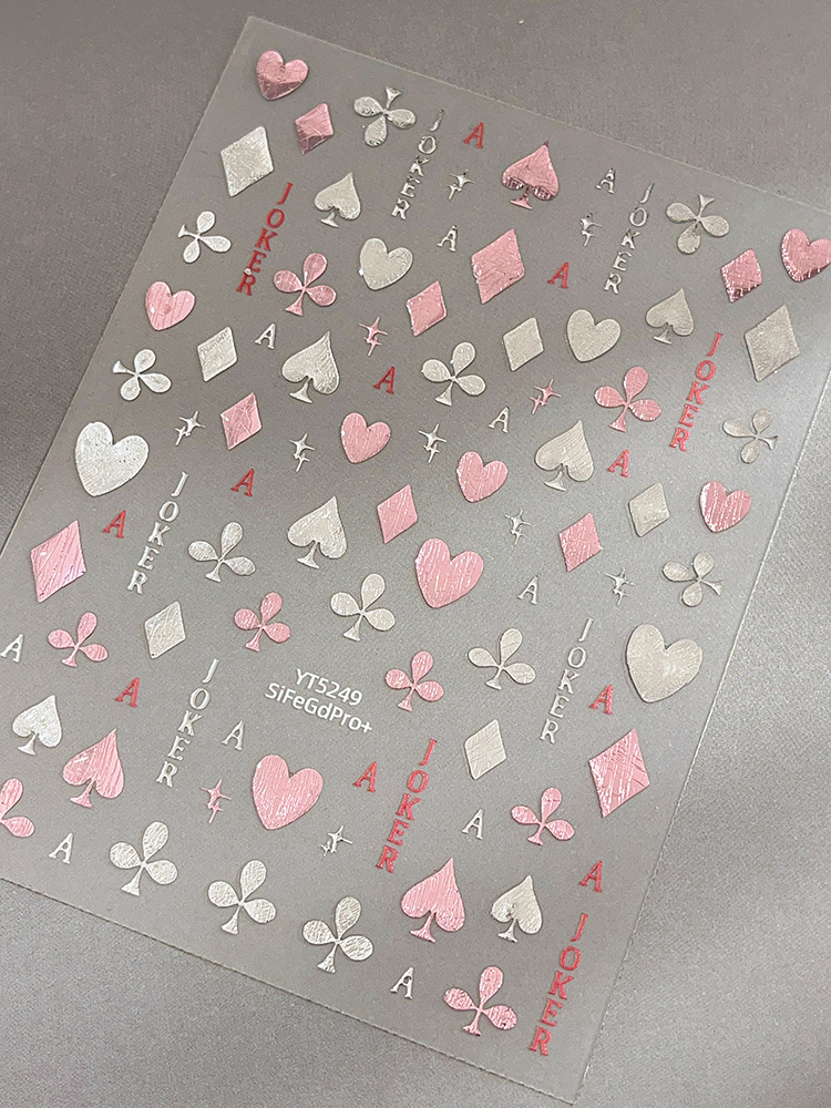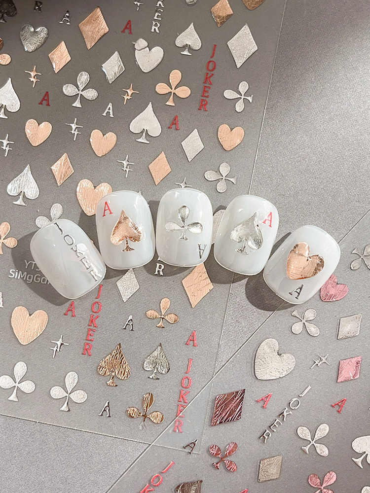 YITU 개미 그림 뜨거운 실버 로즈 골드 젤리 포커 카드 네일 아트 스티커 사랑 간단한 장식 스티커 YT5249