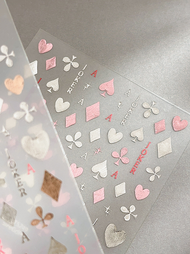 YITU 개미 그림 뜨거운 실버 로즈 골드 젤리 포커 카드 네일 아트 스티커 사랑 간단한 장식 스티커 YT5249스토어 가기