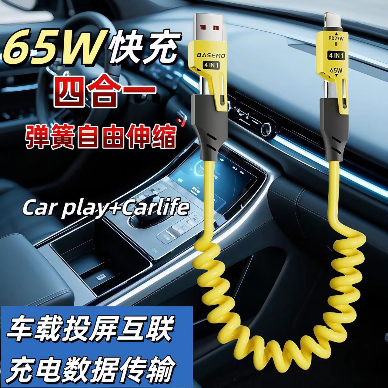 Apple iphone16 자동차 휴대용 화웨이 데이터 케이블 용 국경 간 폭발 65W 봄 텔레스코픽 4 대 1스토어 가기