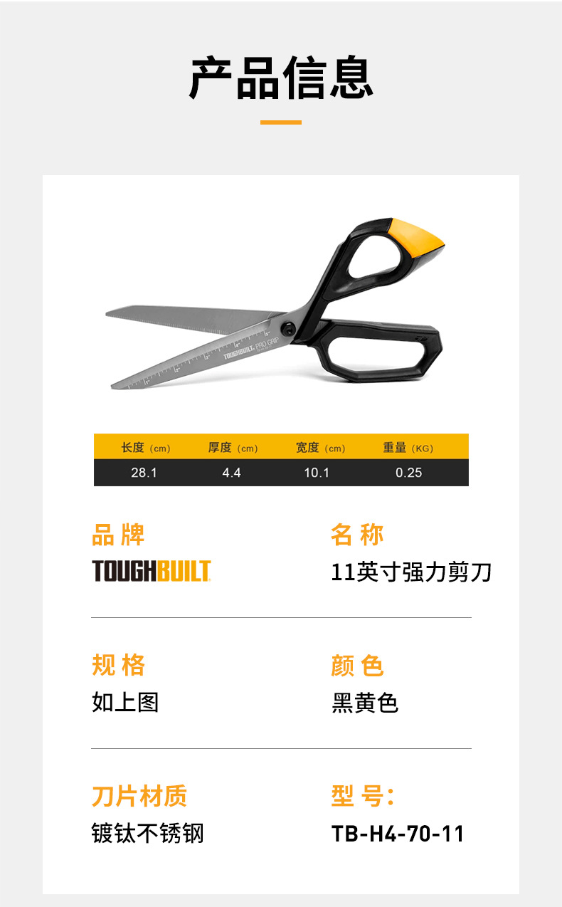 TOUGHBUILT Tuo Billitte 11 인치 강력한 가위 산업 TB-H4-70-11 건설 용 강력한 가위