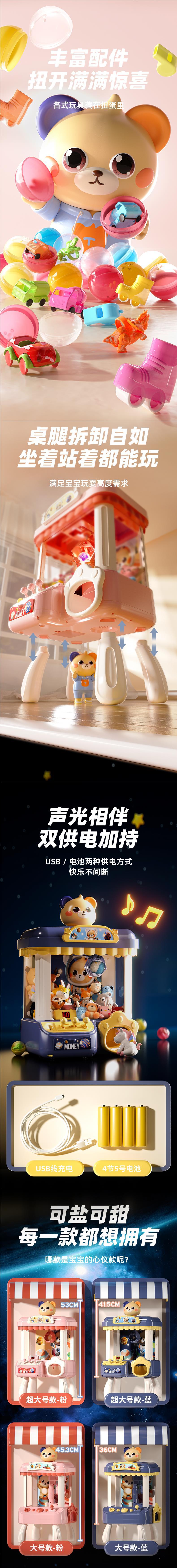 • 고급스러운 선물 상자⭐키높이 - 라지 사이즈 하이 구성 [리틀베어-핑크] 인형 30개 + 가샤폰 10개 + 듀얼 전원 공급 장치 제공