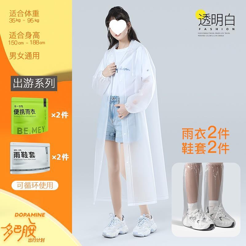 • 휴대용 여행용 4종 세트 - 투명 흰색 비옷 2개 + 흰색 하이탑 2쌍 [개별 포장]