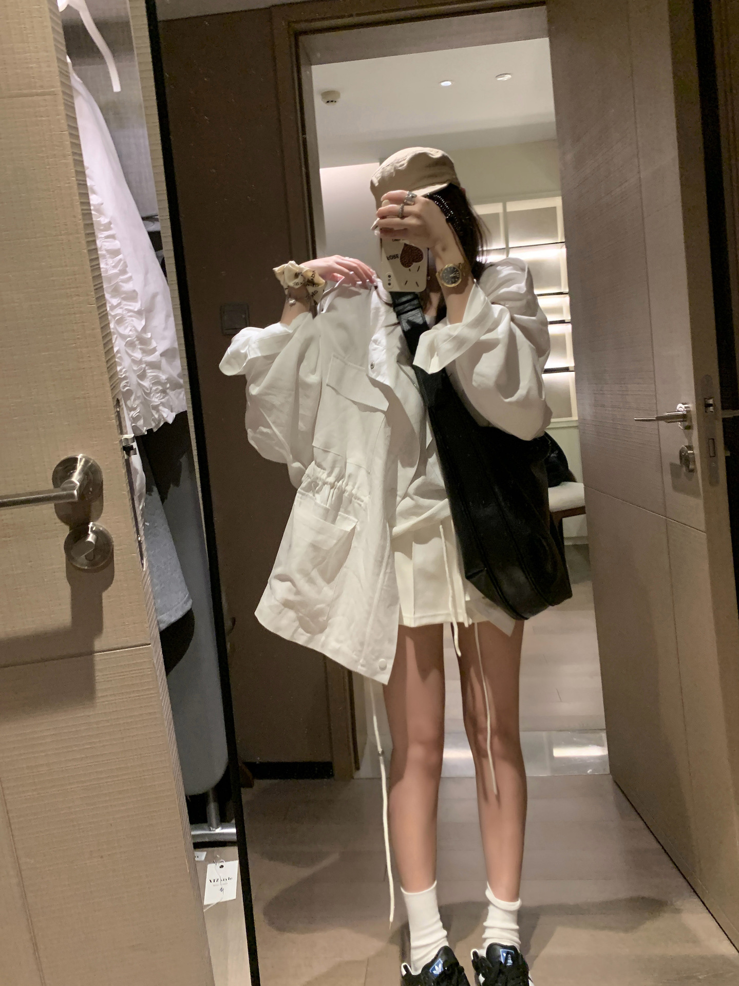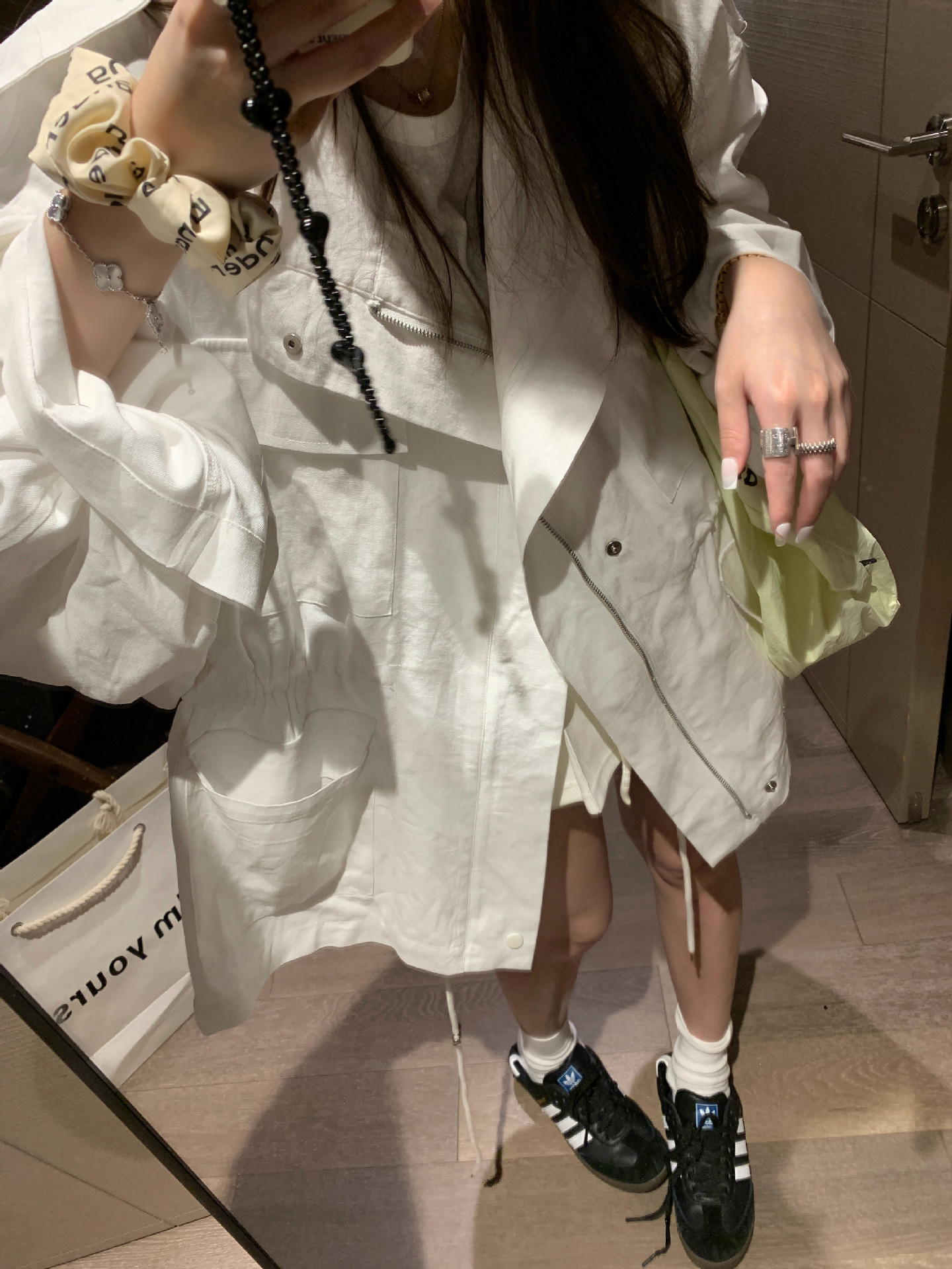 세련된 게으른 스타일 갤러리 모양의 디자인 서양식 화이트 리넨 캐주얼 재킷 여성 봄, 가을 2025 작업복 스타일 재킷스토어 가기