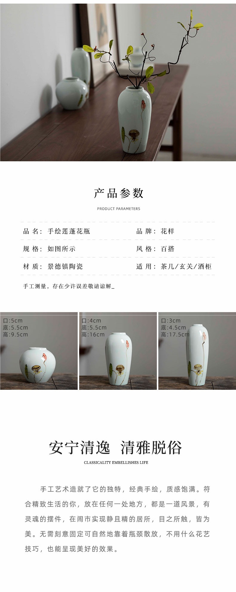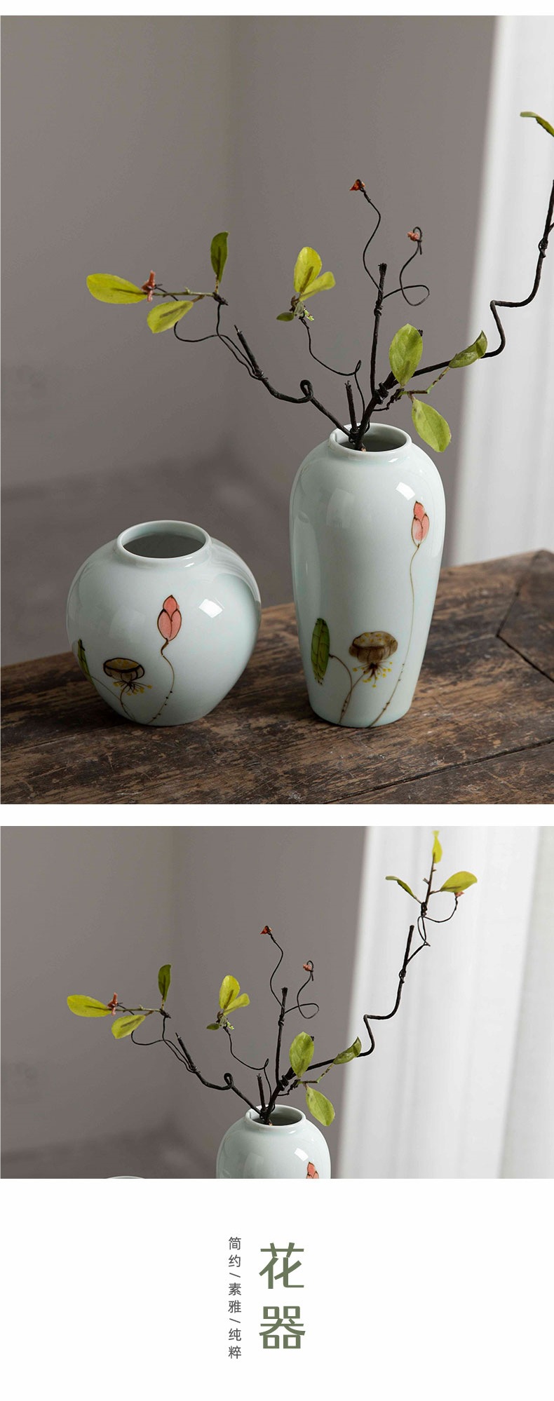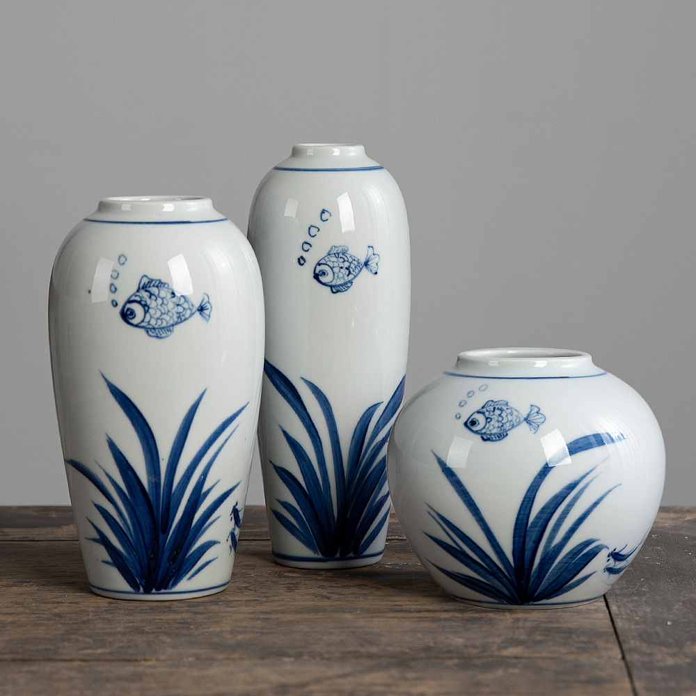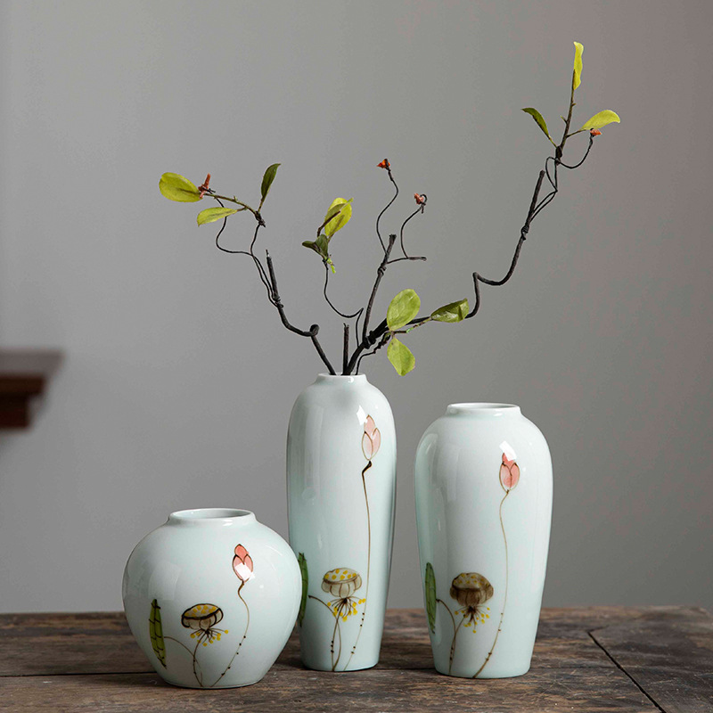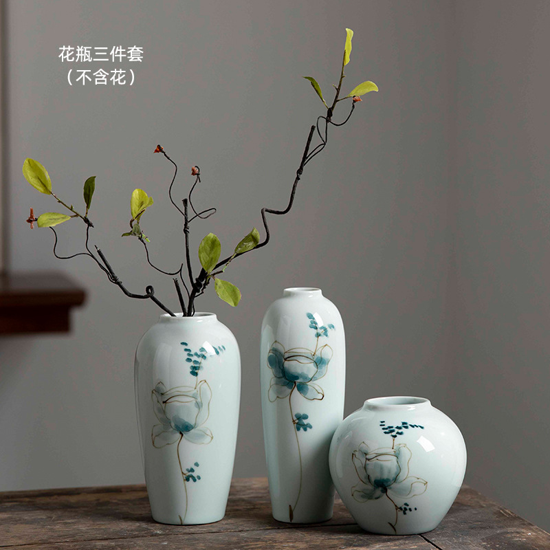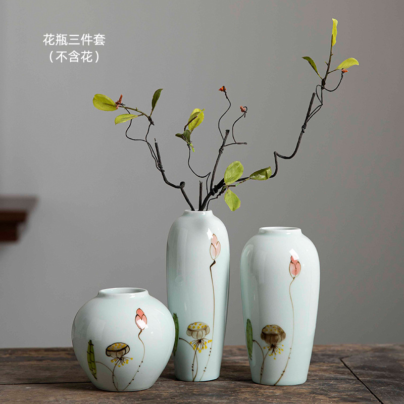 Jingdezhen 수경 세라믹 작은 꽃병 조합 가구 거실 복도 창조적 인 꽃 배열 말린 꽃 재배 홈 액세서리
