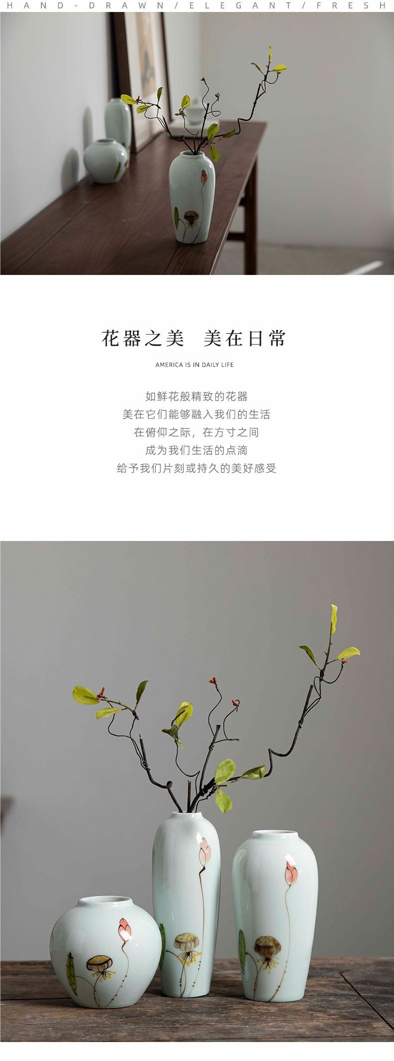 Jingdezhen 수경 세라믹 작은 꽃병 조합 가구 거실 복도 창조적 인 꽃 배열 말린 꽃 재배 홈 액세서리스토어 가기