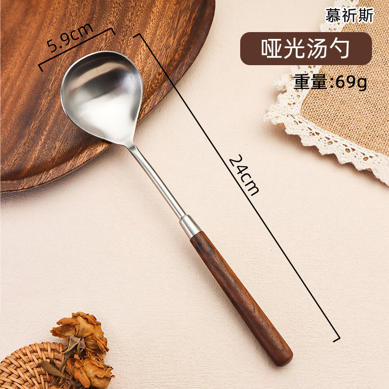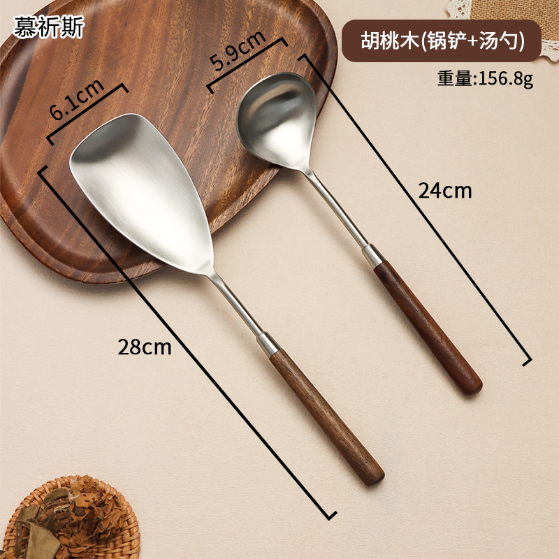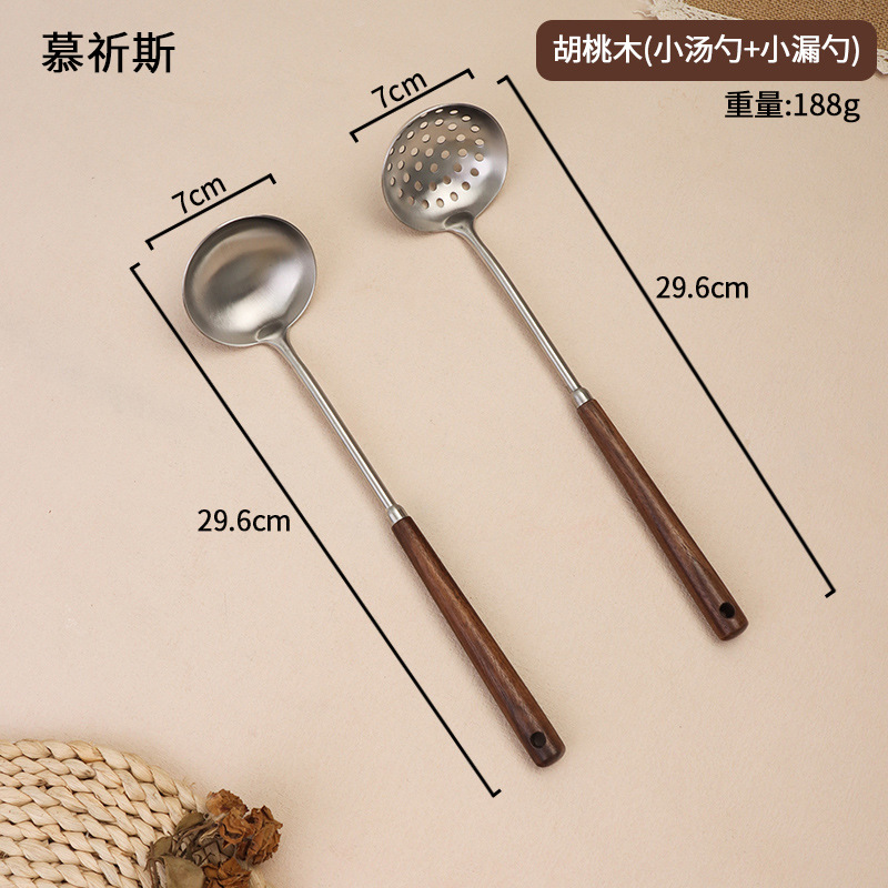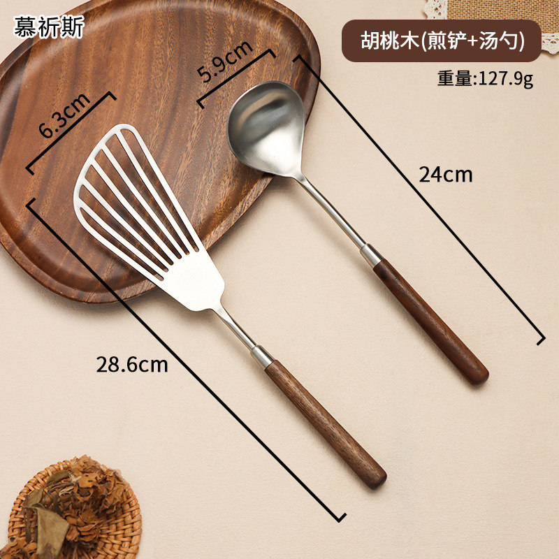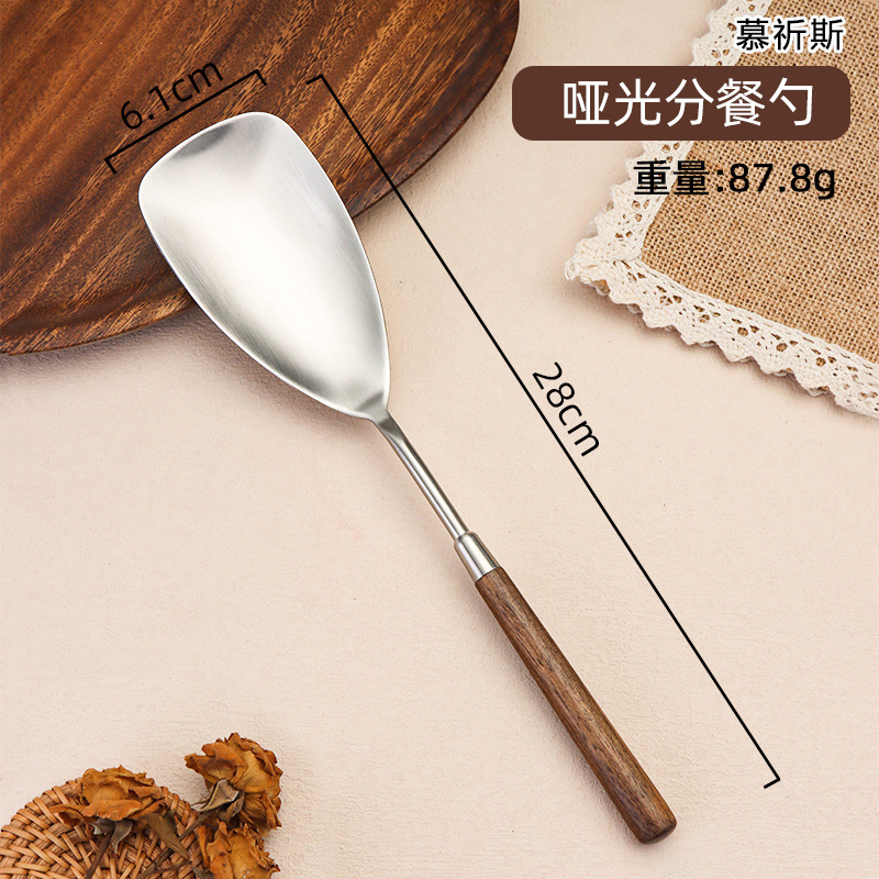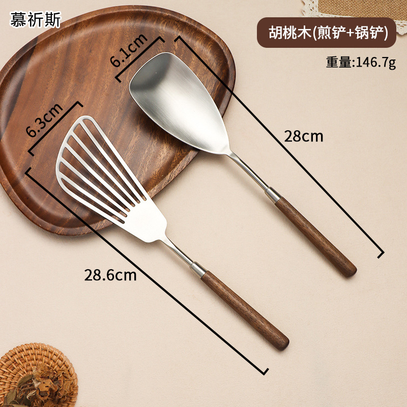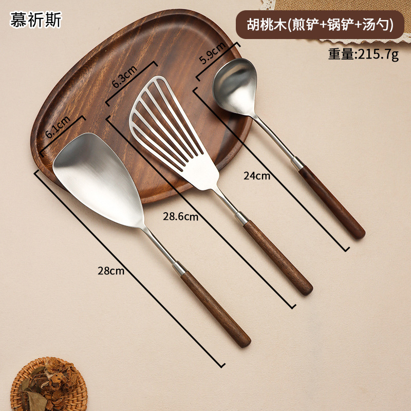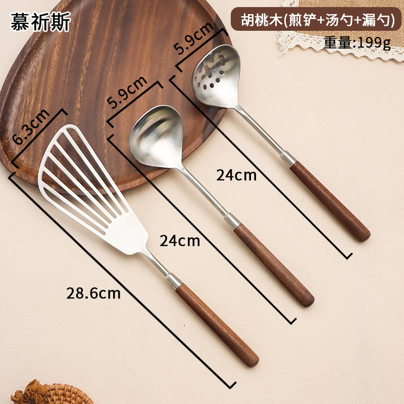 304 스테인레스 스틸 호두 나무 손잡이 주걱 가정용 튀김 주걱 수프 숟가락 주걱 과일 칼 작은 주걱 부엌 세트