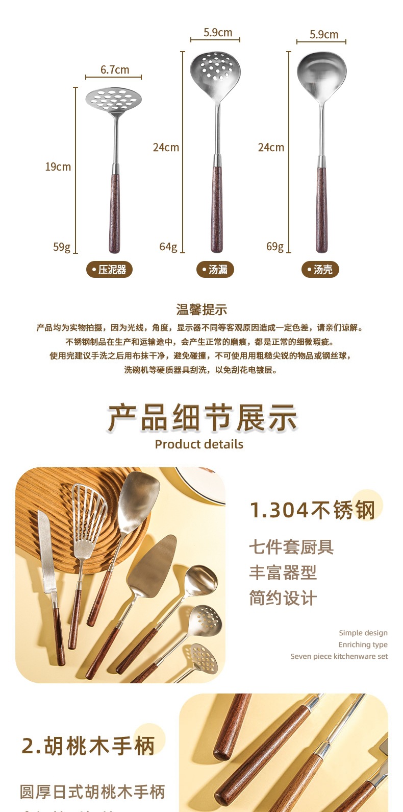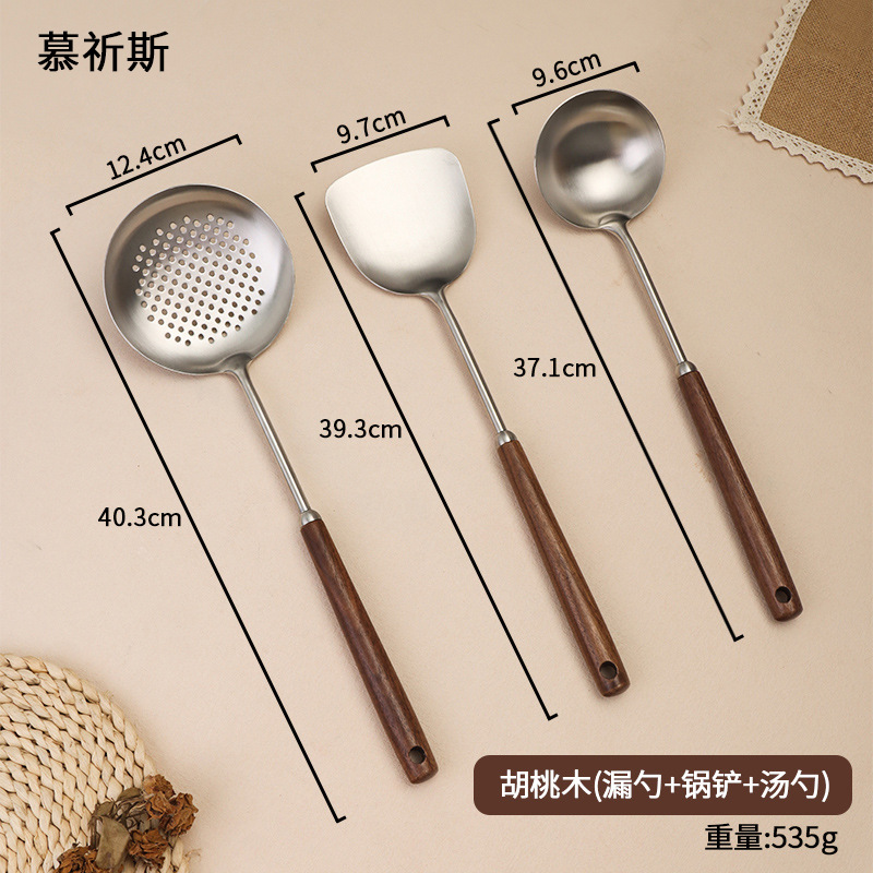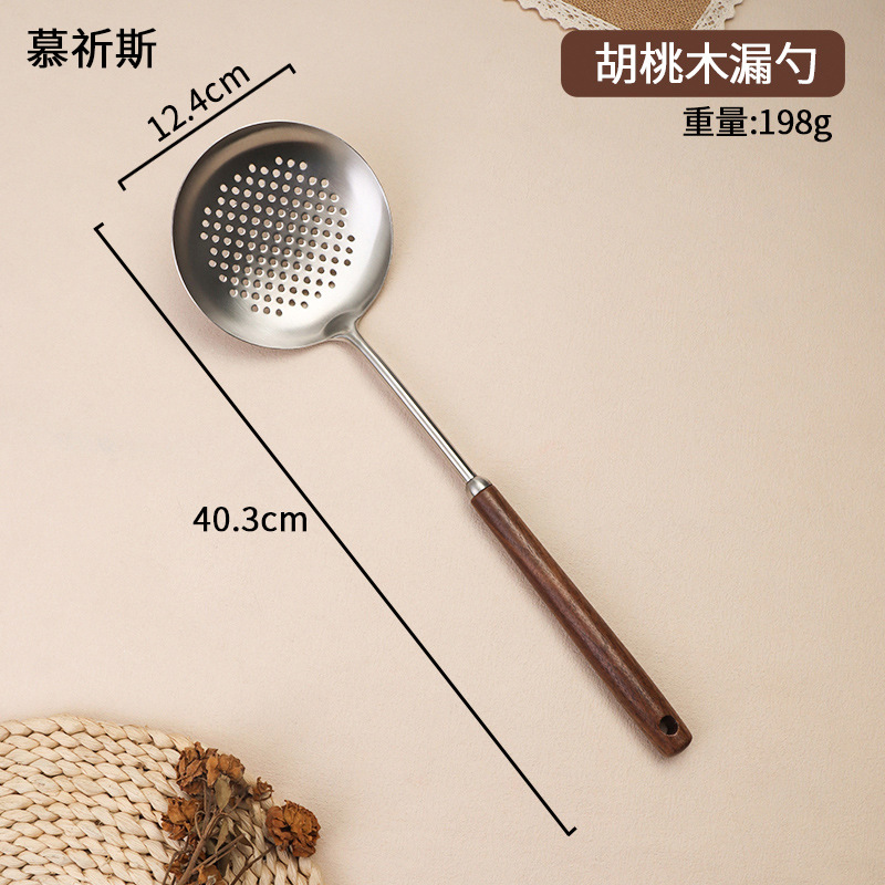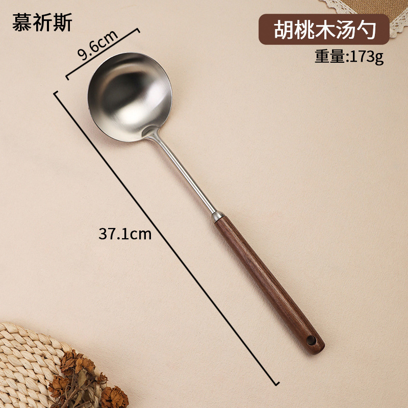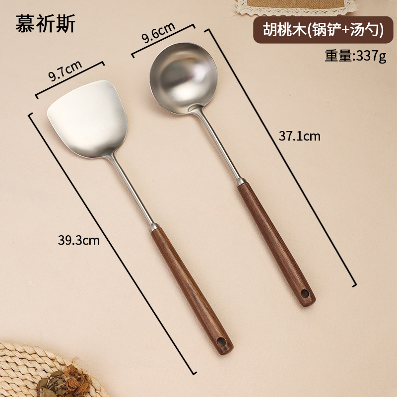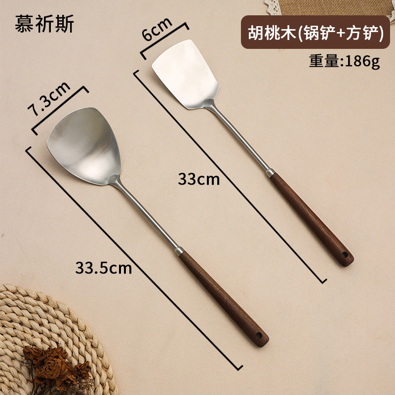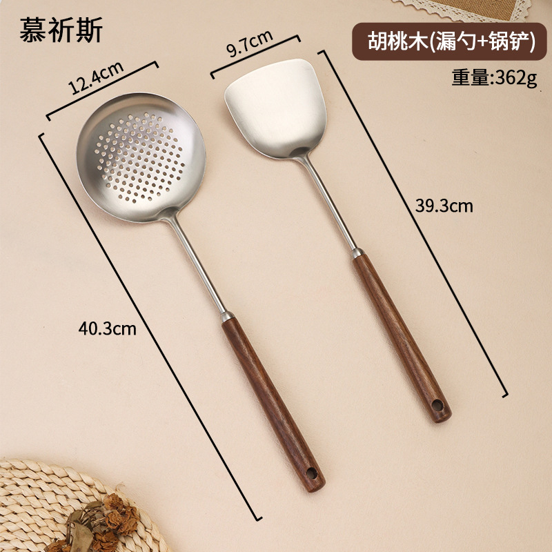 304 스테인레스 스틸 호두 나무 손잡이 주걱 가정용 튀김 주걱 수프 숟가락 주걱 과일 칼 작은 주걱 부엌 세트