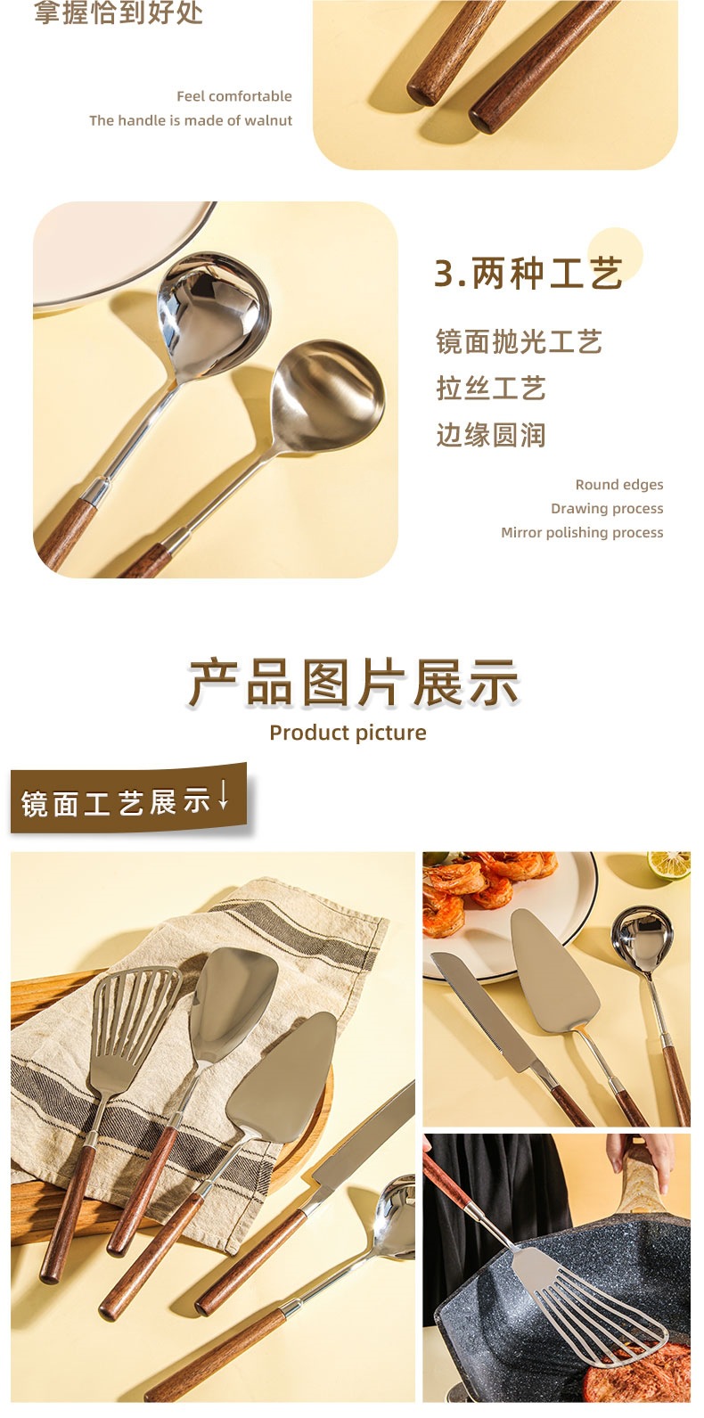 • [304 스테인리스] 호두나무 소형 프라이팬 주걱