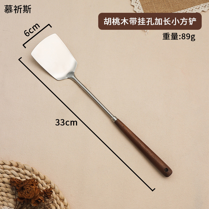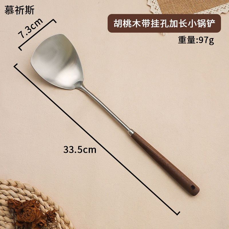 • [304 스테인레스 스틸] 호두나무 소형 프라이팬 주걱 걸이 구멍 확장