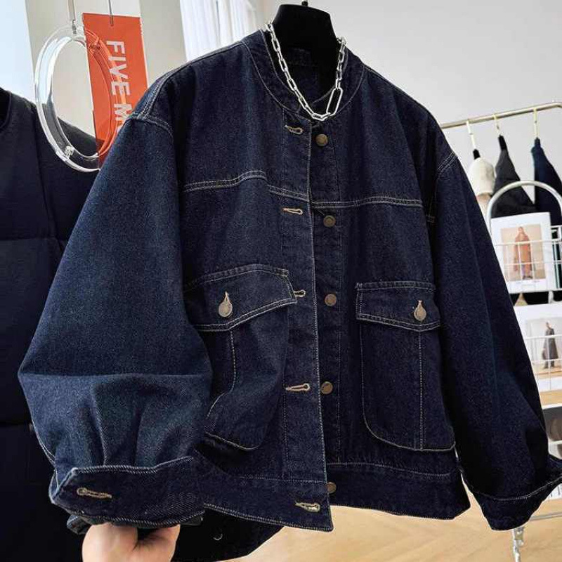 가을 젠틀웨어 여성 2025 새로운 한국 캐주얼 서양식 패션 디자인 감각 느슨한 데님 코트 트렌디스토어 가기