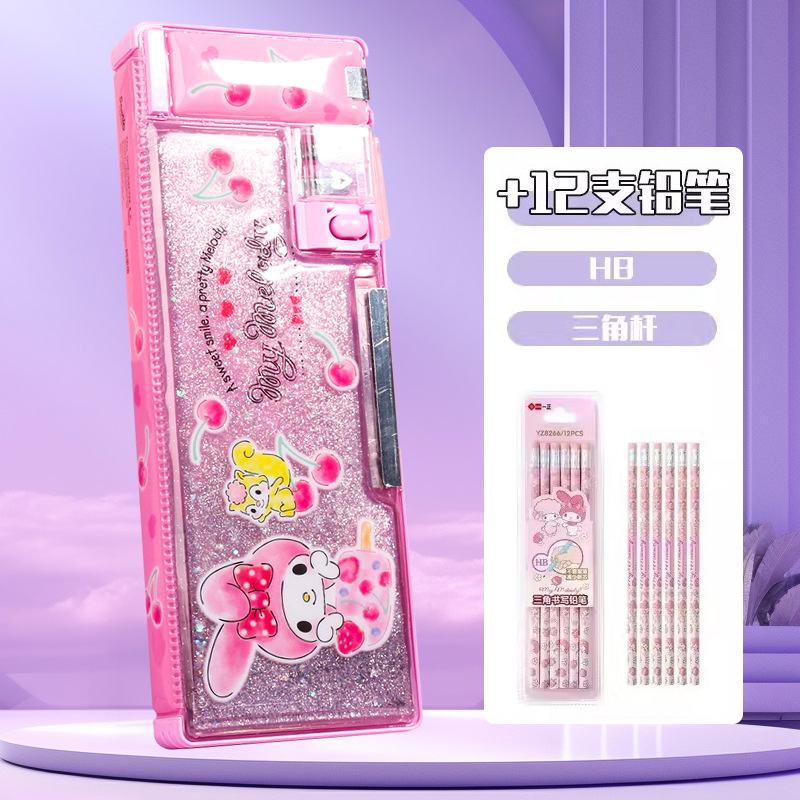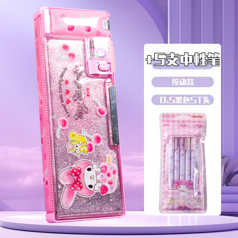 초등학생을위한 산리오 퀵 샌드 문구 상자 유치원 쿨로 미 멜로디 개 다기능 연필 상자