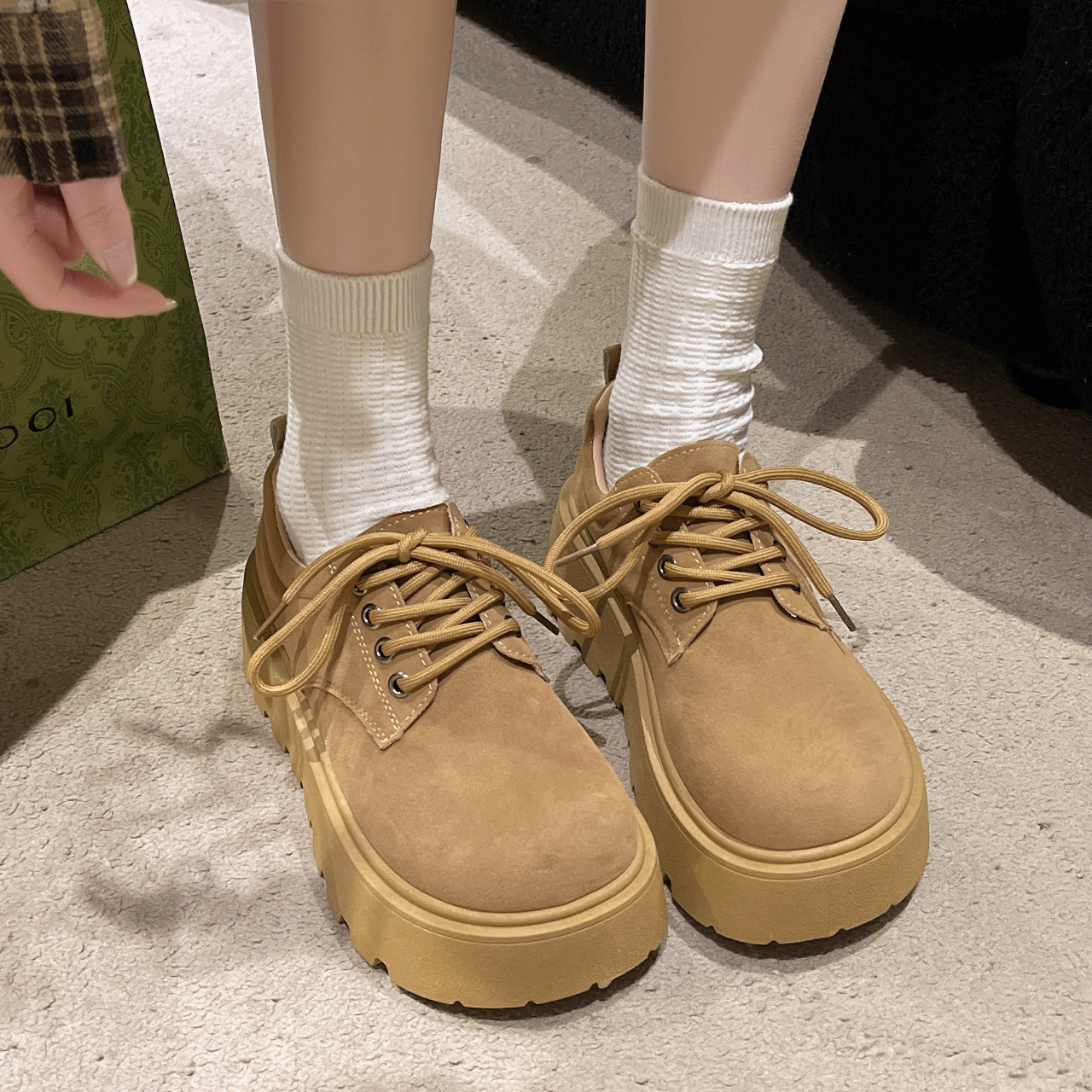 인터넷 연예인 유행 플랫폼 신발 여성 2025 년 봄과 여름 새로운 레이스 업 스커트 높이 증가 올 매치 버켄 스톡 캐주얼 신발스토어 가기