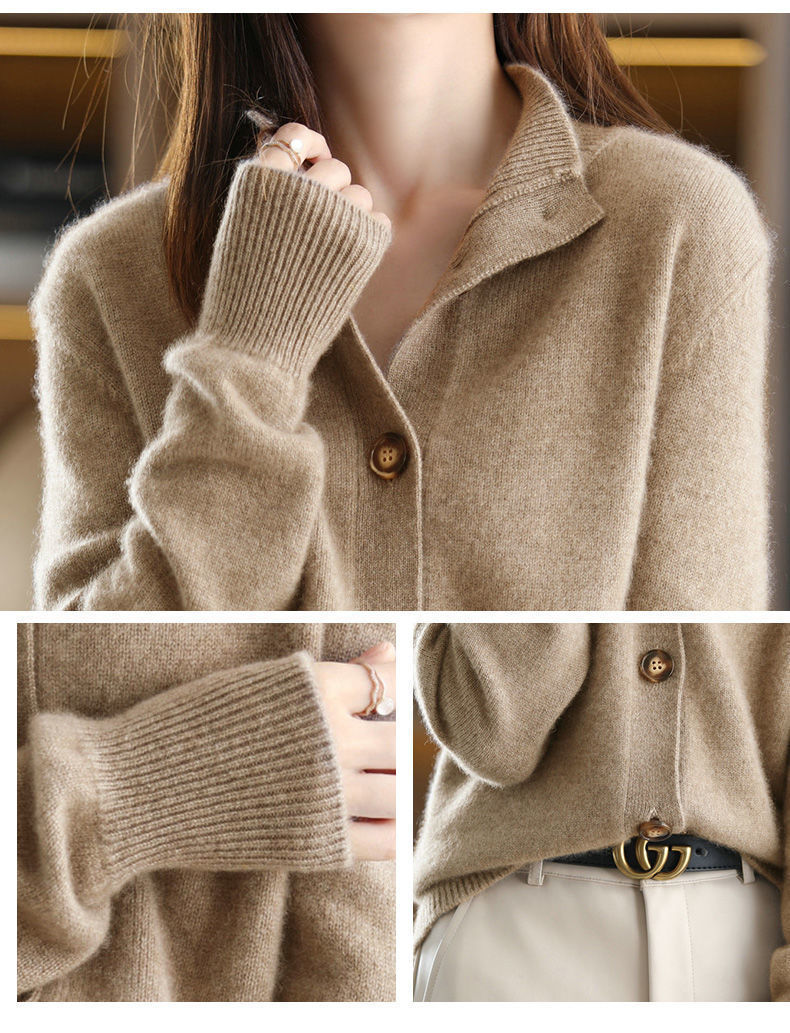 빈티지 가을과 겨울 새로운 스타일 수직 칼라 니트 카디건 느슨한 짧은 코트 여자 라운드 넥 한국식 긴팔 올 매치 스웨터스토어 가기