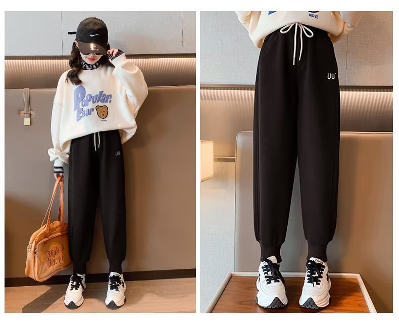 소녀 스포츠 바지 2024 봄과 가을 새로운 스타일 중대형 어린이 소녀 캐주얼 스웨트 팬츠 가을 얇은 바지스토어 가기