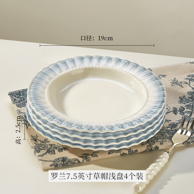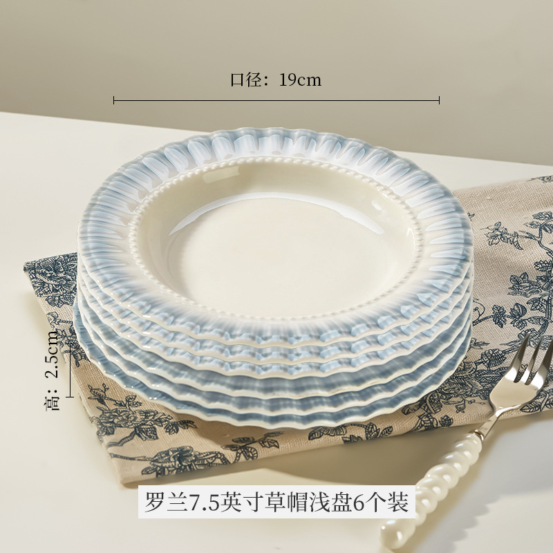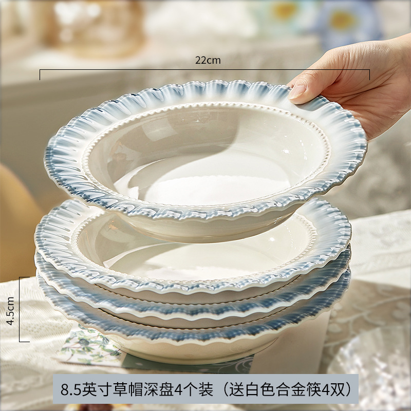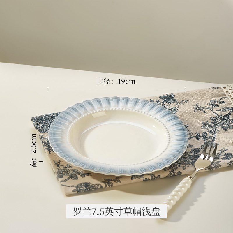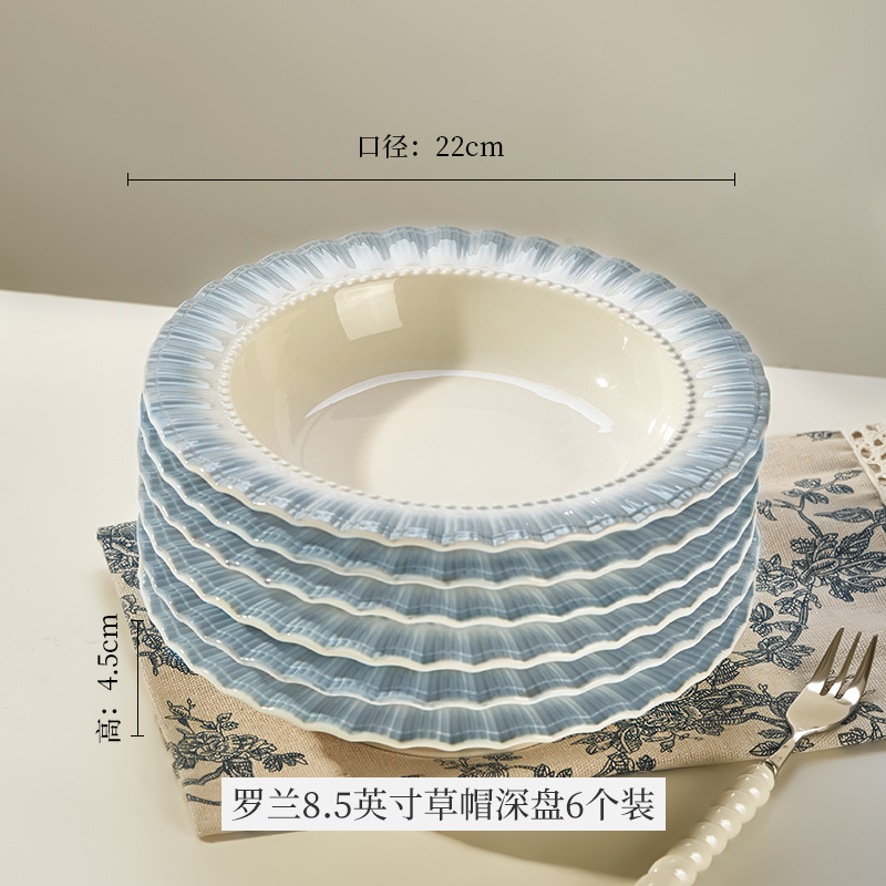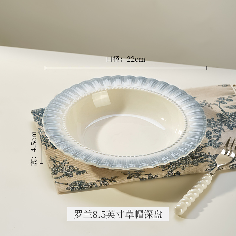 프랑스 스타일 밀짚 모자 플레이트 느낌 세라믹 플레이트 가정용 접시 Underglyze 다채로운 식기 요리 가벼운 럭셔리 딥 디너 플레이트스토어 가기