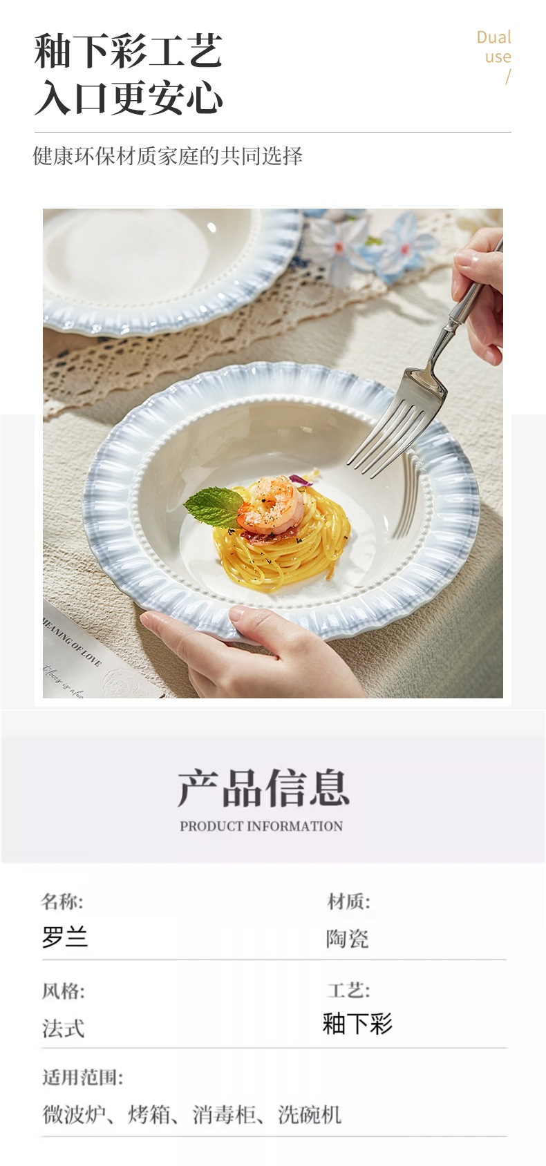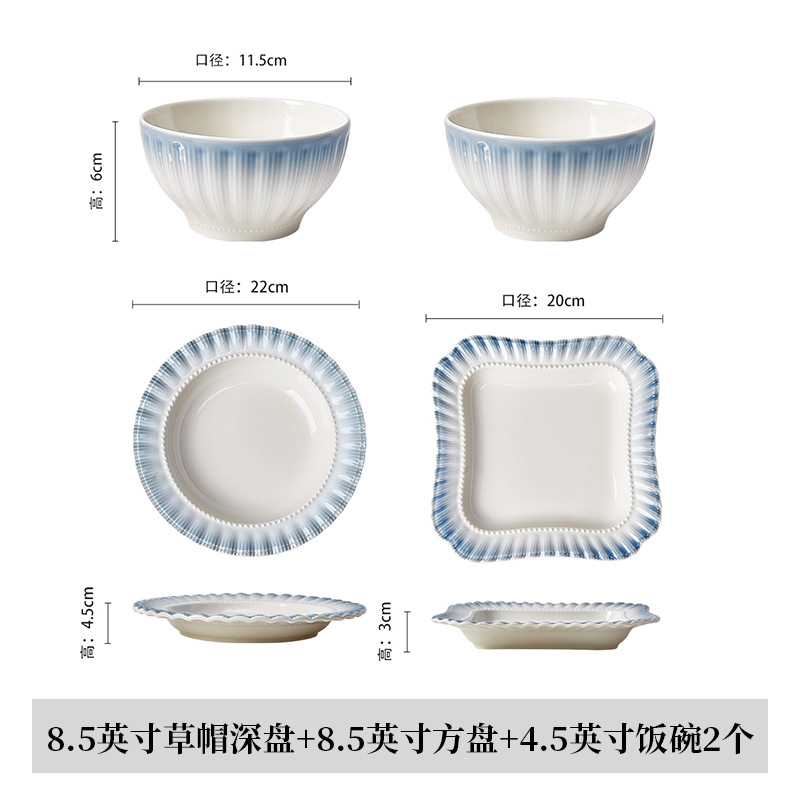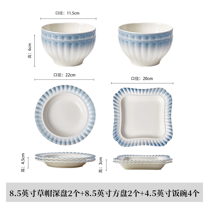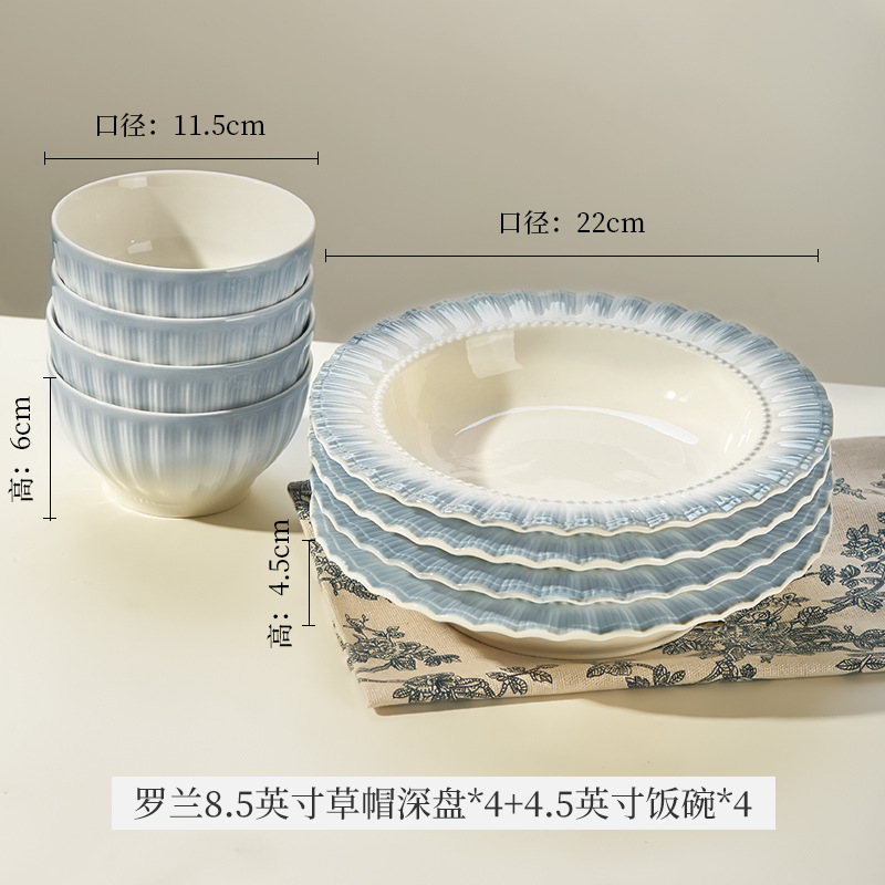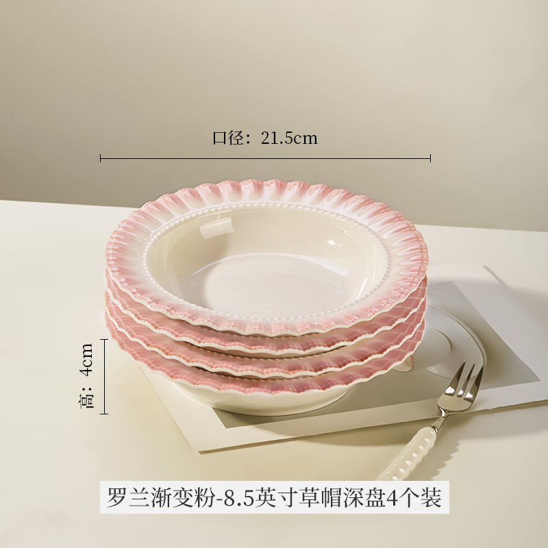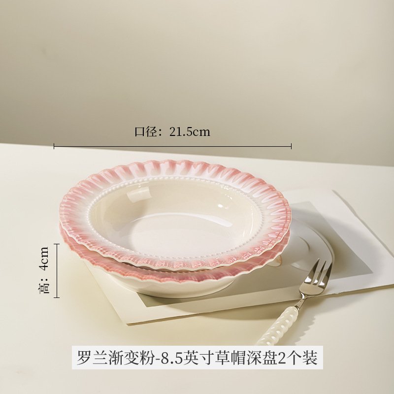 프랑스 스타일 밀짚 모자 플레이트 느낌 세라믹 플레이트 가정용 접시 Underglyze 다채로운 식기 요리 가벼운 럭셔리 딥 디너 플레이트스토어 가기