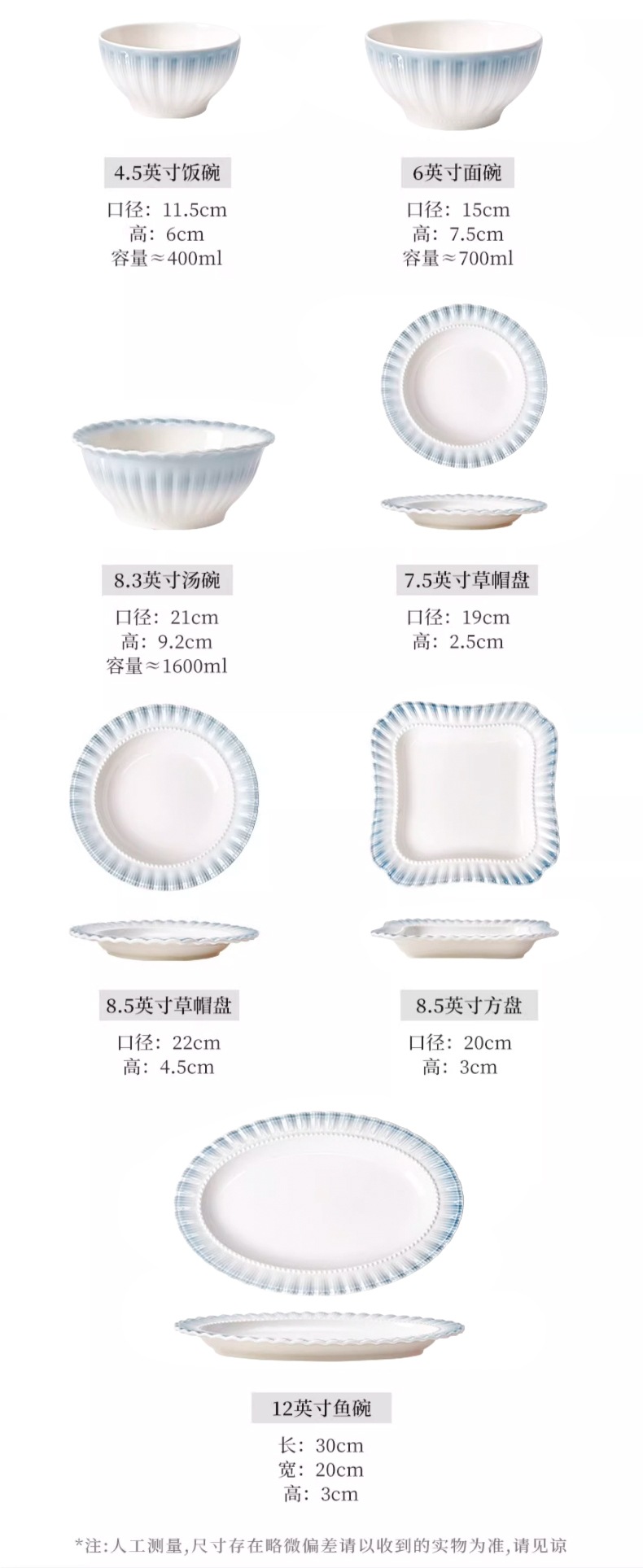 프랑스 스타일 밀짚 모자 플레이트 느낌 세라믹 플레이트 가정용 접시 Underglyze 다채로운 식기 요리 가벼운 럭셔리 딥 디너 플레이트
