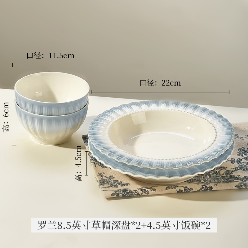 • 로란 8.5inch 밀짚모자 깊은 접시*2+ 4.5inch 밥그릇*2