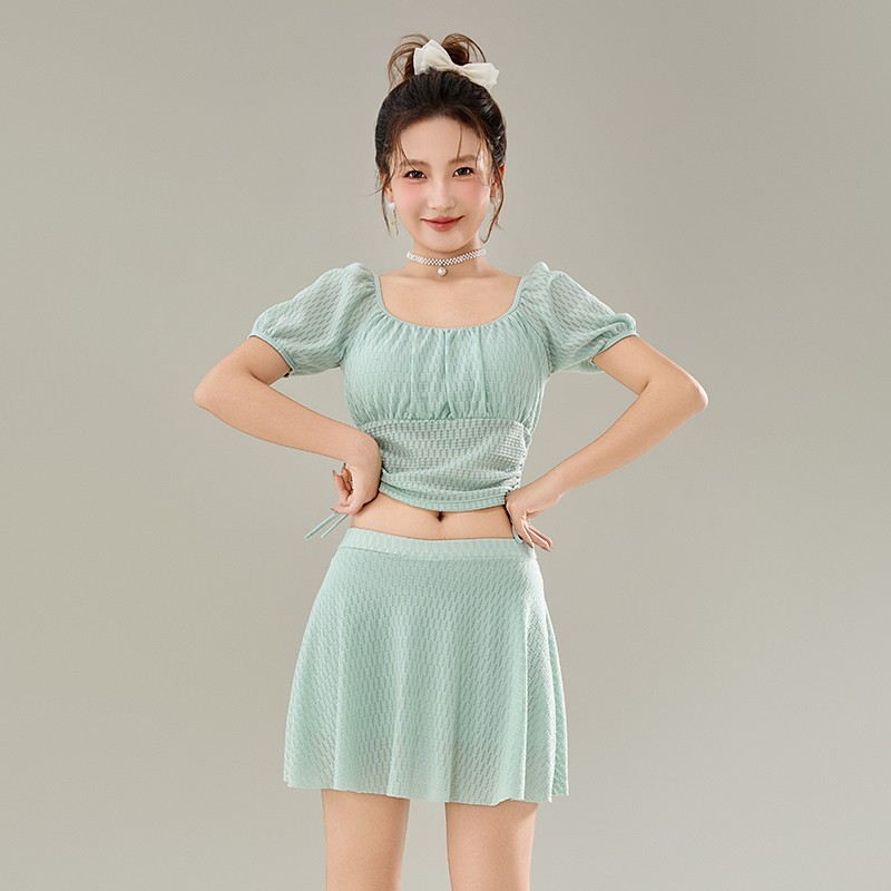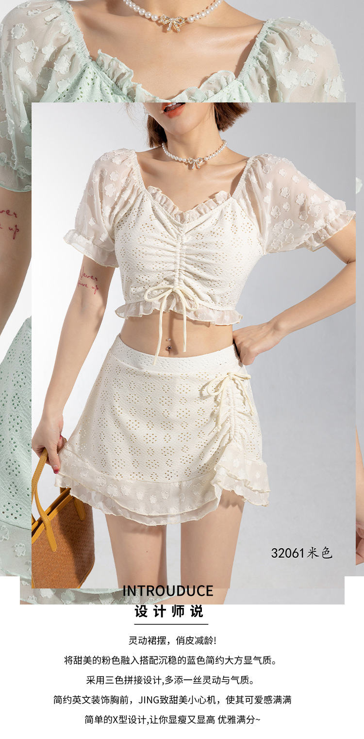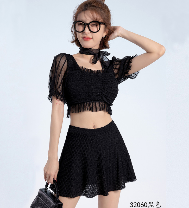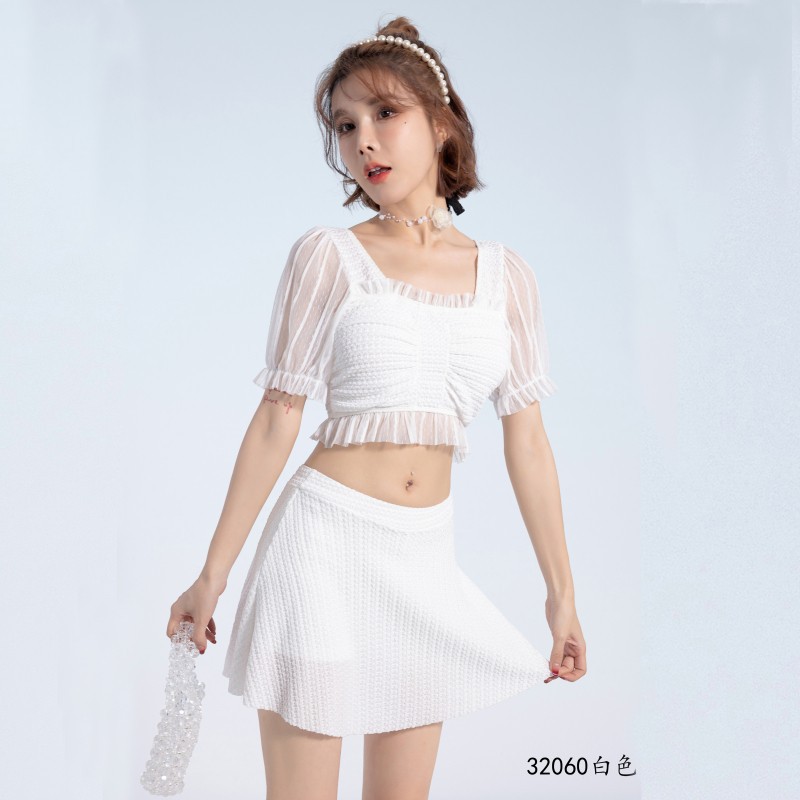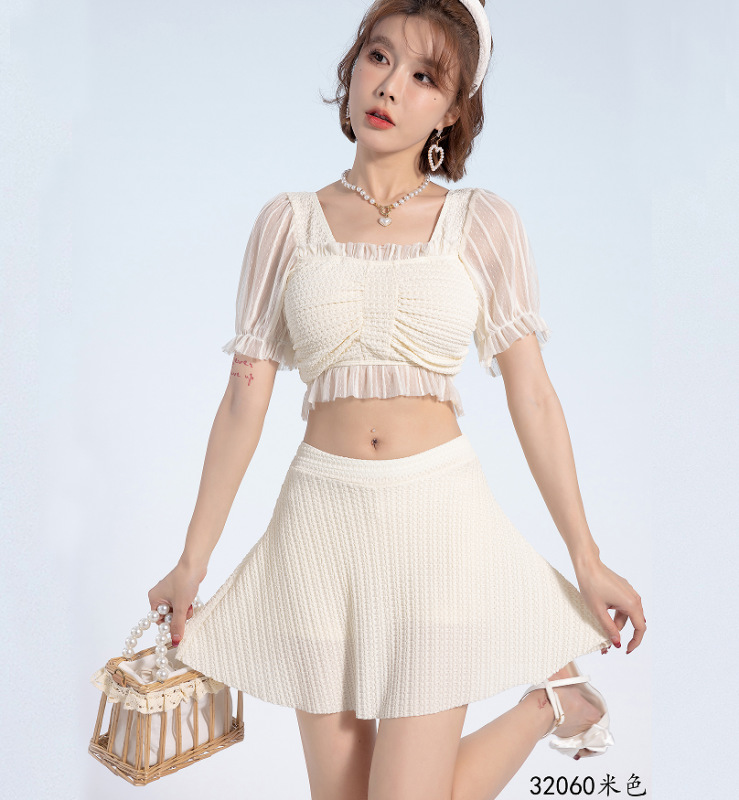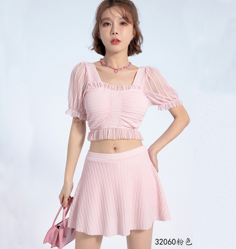 2025 년 여름 새 한국판 보수 스플릿 수영복 하이 센스 단색 스커트, 바람 달콤한 수영 도매스토어 가기