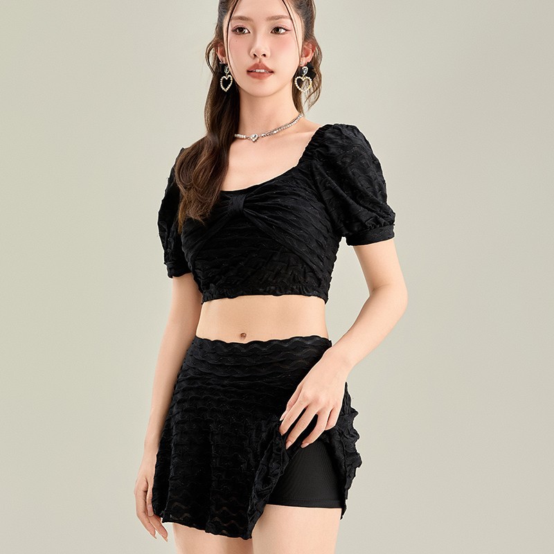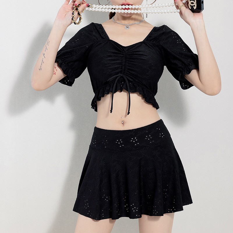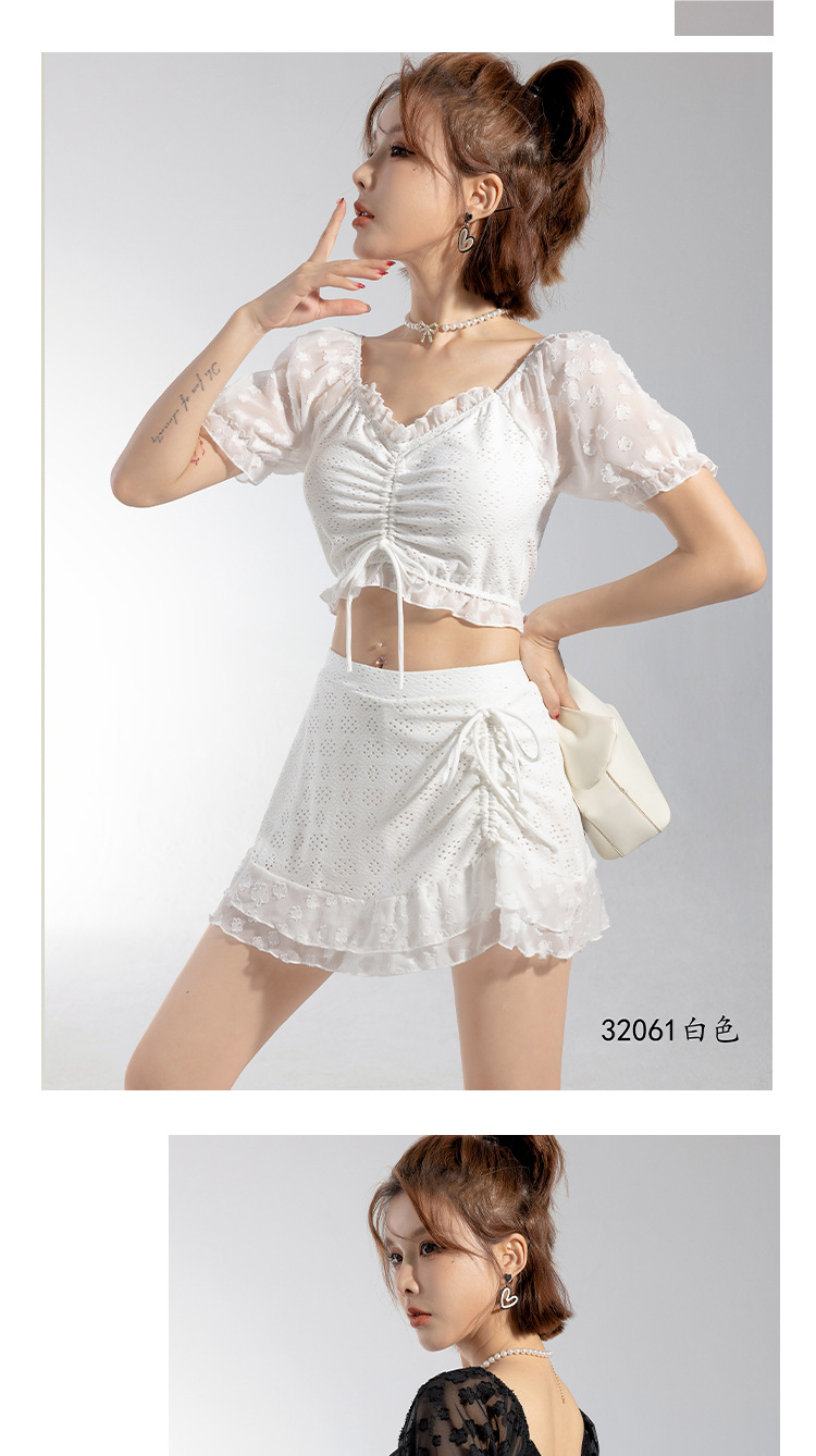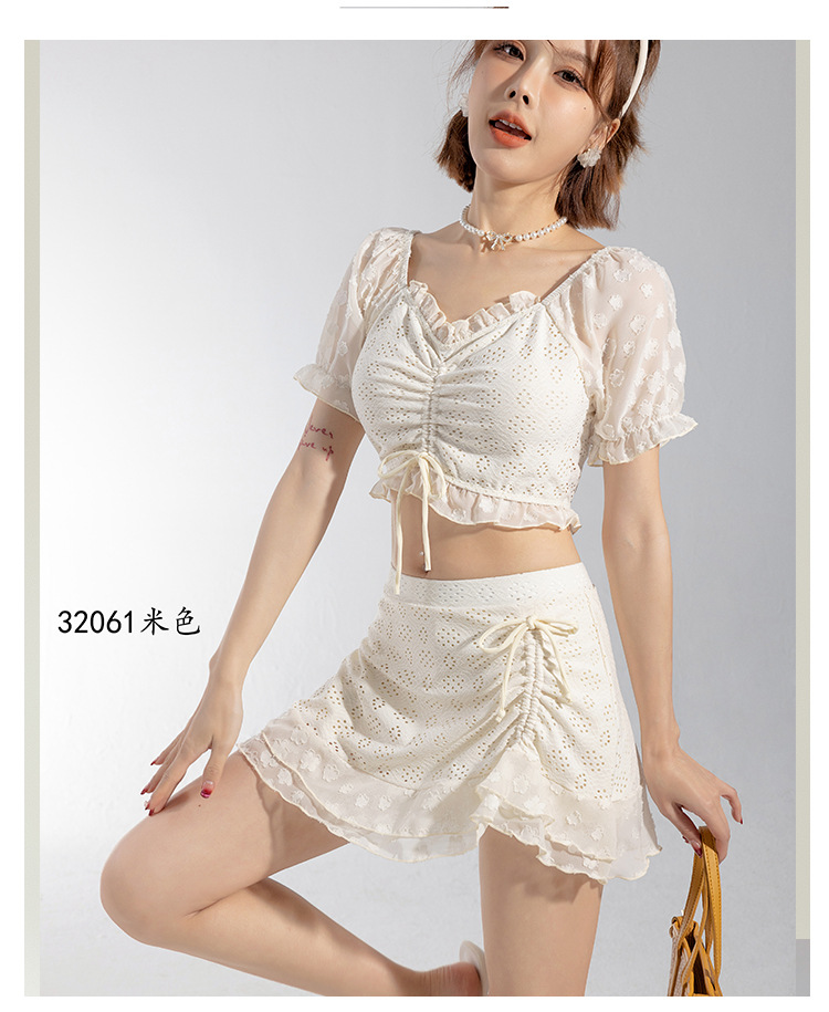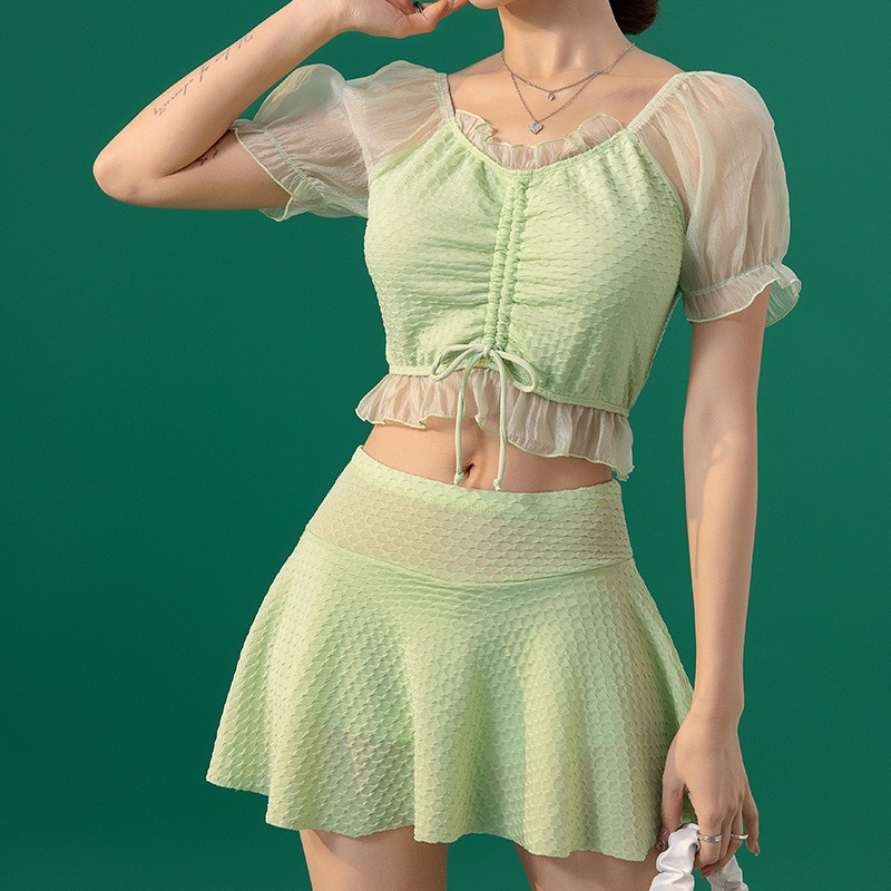 2025 년 여름 새 한국판 보수 스플릿 수영복 하이 센스 단색 스커트, 바람 달콤한 수영 도매스토어 가기