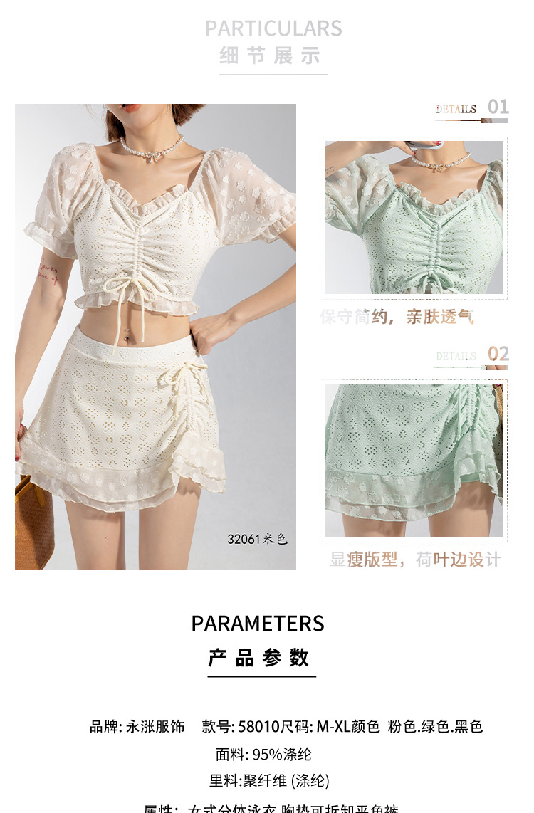 2025 년 여름 새 한국판 보수 스플릿 수영복 하이 센스 단색 스커트, 바람 달콤한 수영 도매