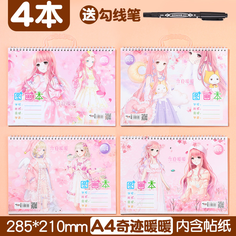 A4 만화 귀여운 소녀의 코일 그림책 어린이 빈 그림책 초등학교 학생 유치원 미술 그림 종이스토어 가기