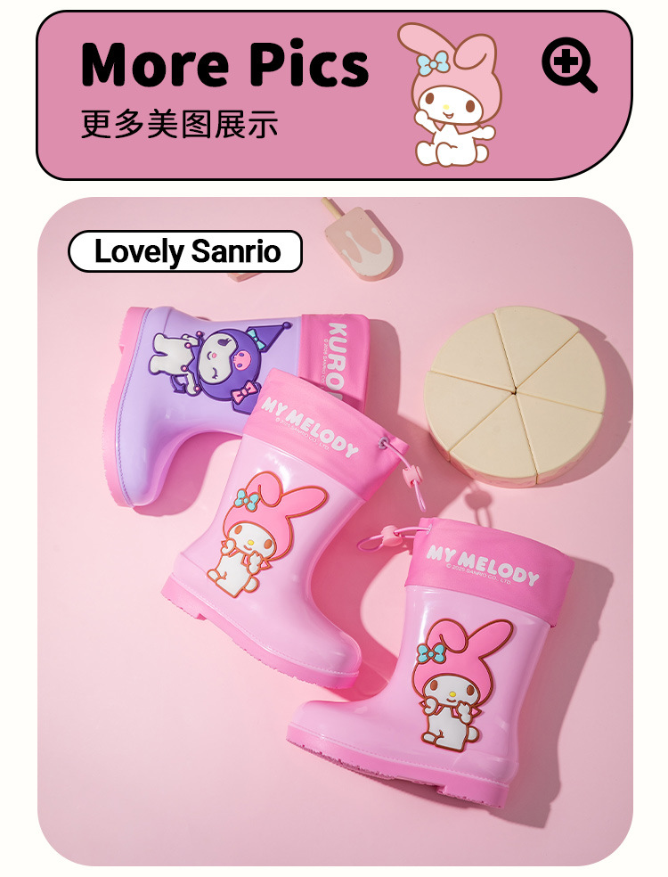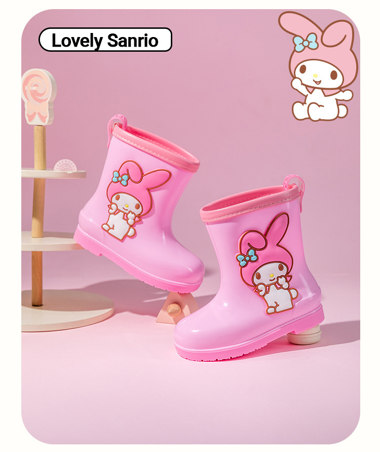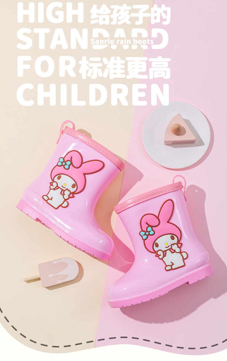 산리오 방수 빔 쿨로 미 봄과 여름 어린이 비 신발 짧은 튜브 야외 미끄럼 사계절 아기 소녀 장화
