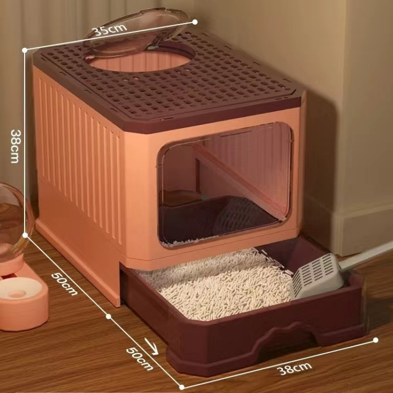 고양이 쓰레기 트레이 대형 완전 밀폐 된 화장실 고양이 쓰레기 트레이 안티 스플래시 큰 고양이 트레이 접히는 고양이 냄새 방지