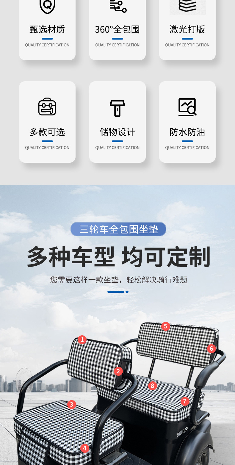 Emma Yadi Jinpeng Aimeida Daan 나이프 새 날 Wanshida 전기 세발 자전거 시트 커버 쿠션스토어 가기