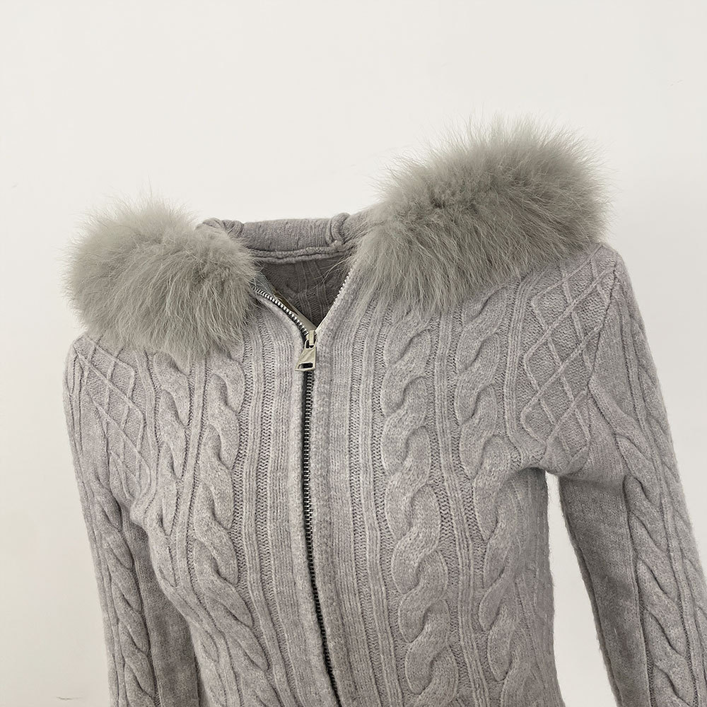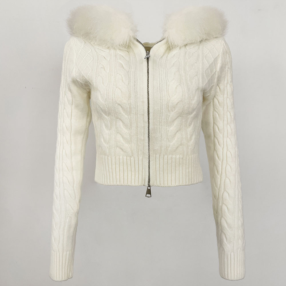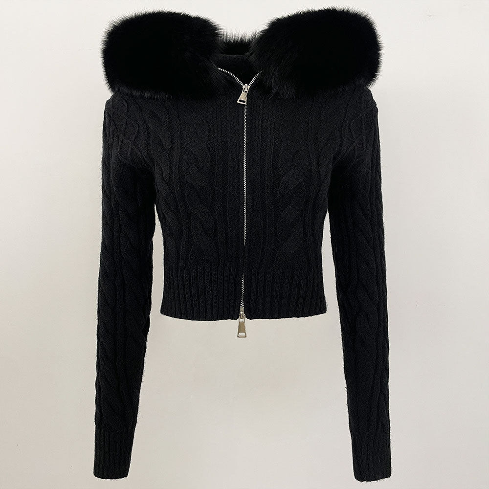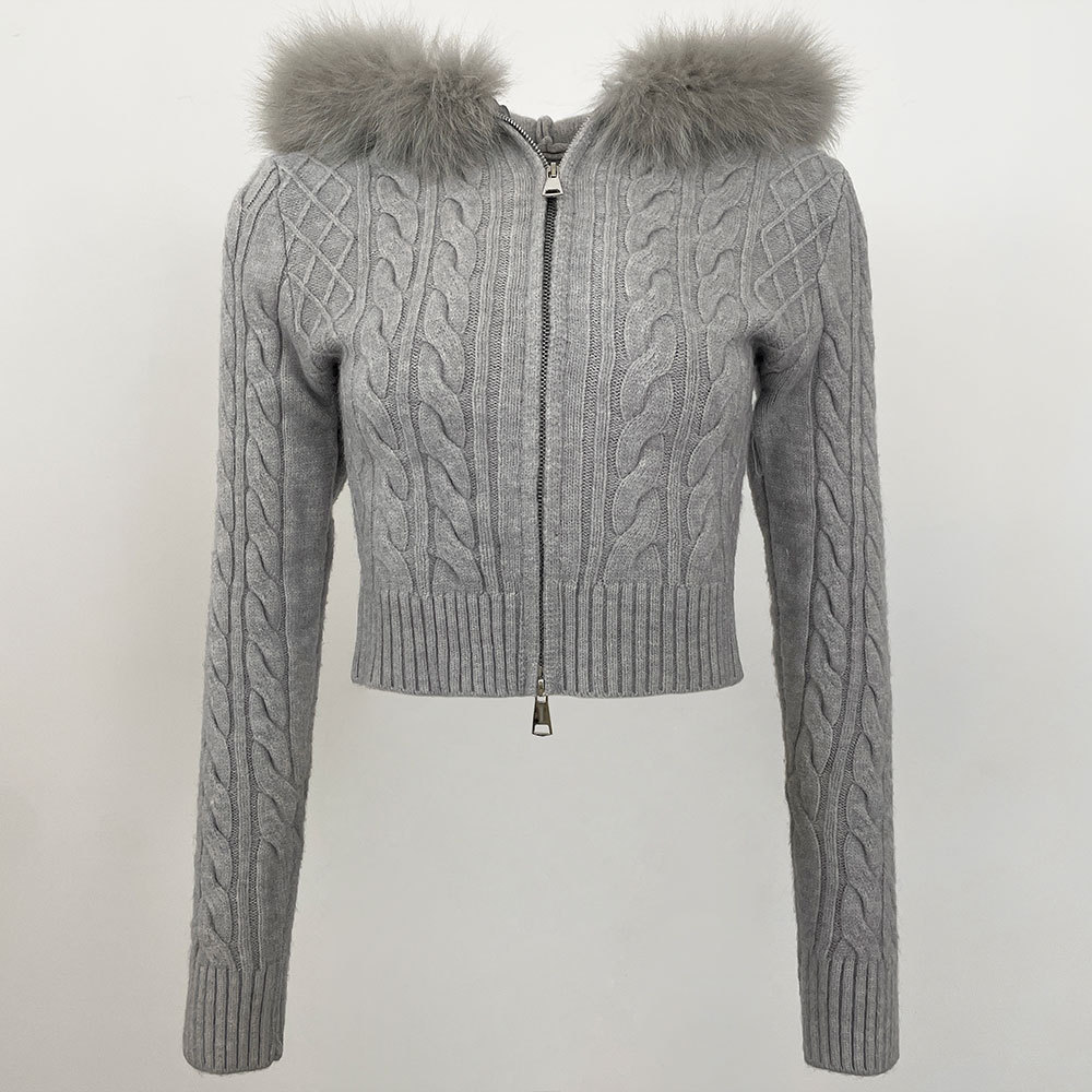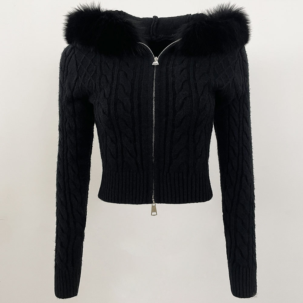 2025 겨울 새로운 신선한 우아한 랩 후드 디자인 소녀 스웨터 양방향 지퍼 카디건 짧은 코트스토어 가기