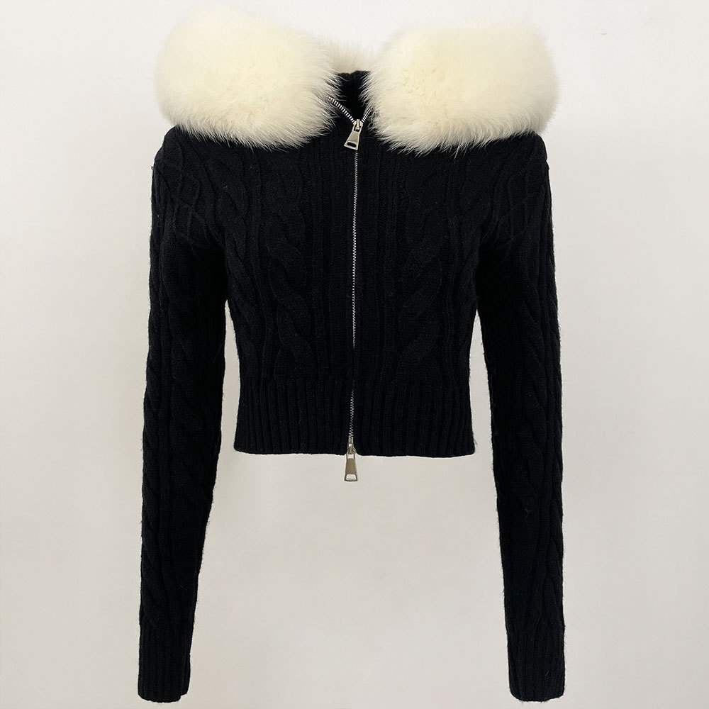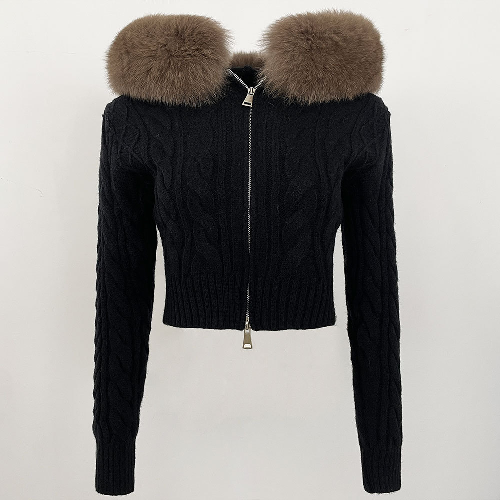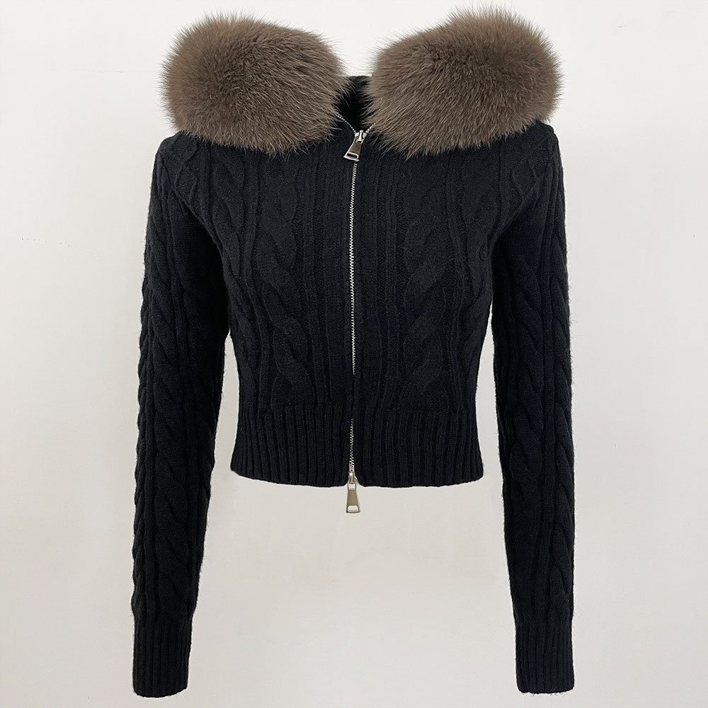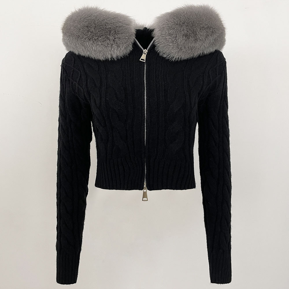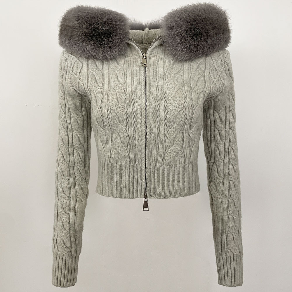 2025 겨울 새로운 신선한 우아한 랩 후드 디자인 소녀 스웨터 양방향 지퍼 카디건 짧은 코트스토어 가기