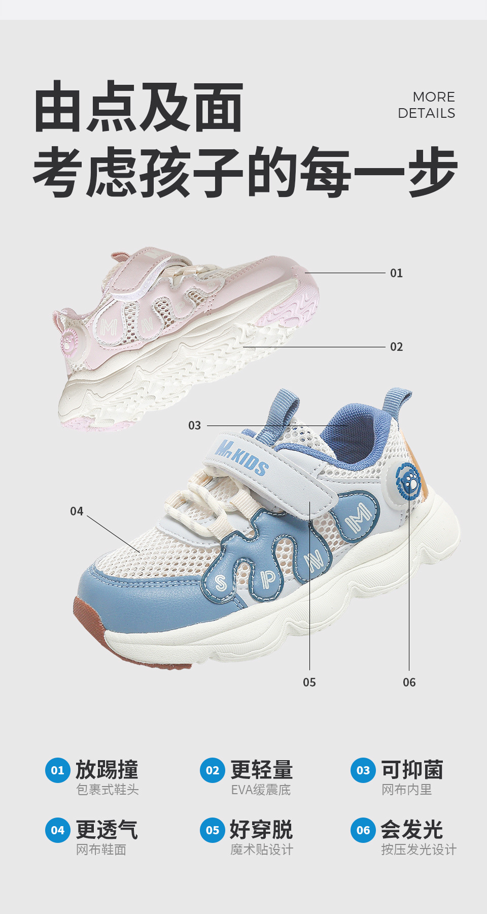 지미 베어 2025 봄 새로운 아기 과학 기능 신발 소년 야외 운동화 소녀 캐주얼 후크와 루프스토어 가기