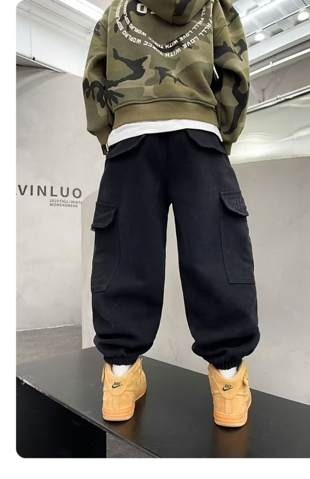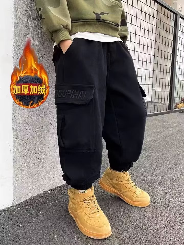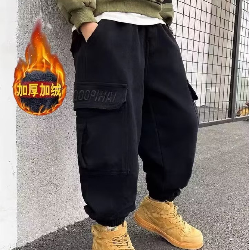 남학생 기모 가을과 겨울 2024 새로운 큰 소년 겨울 어린이 원피스 벨벳 겨울 패딩 바지