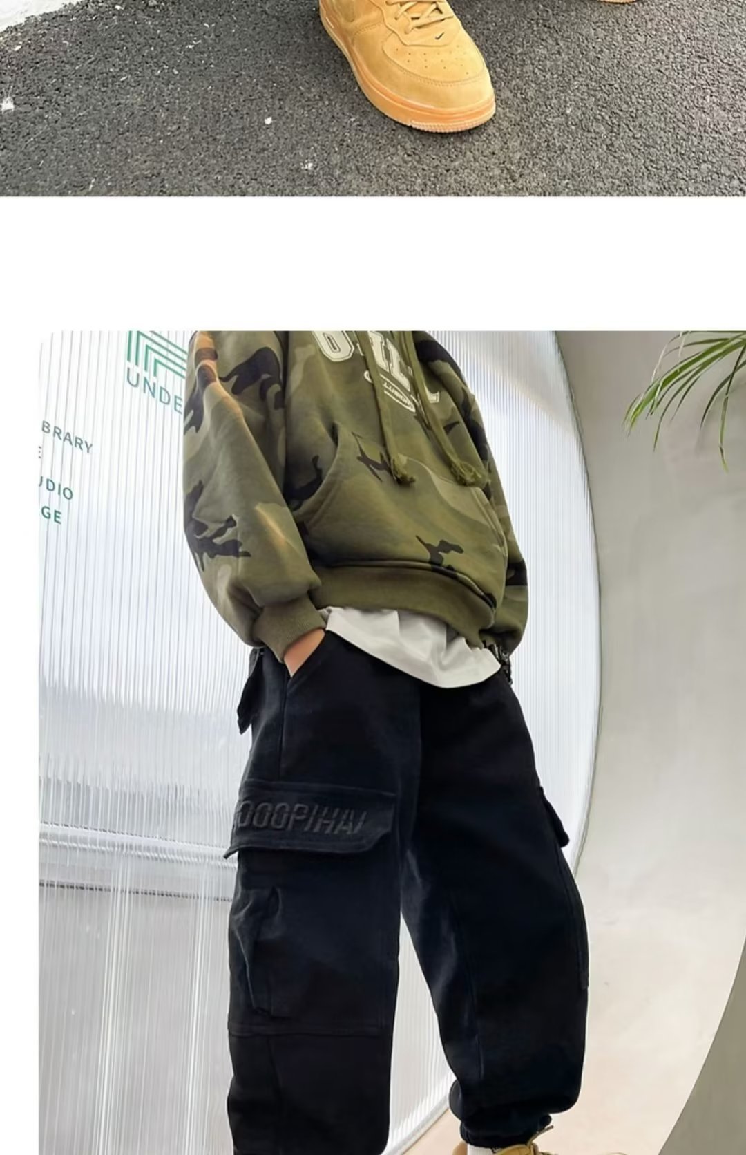남학생 기모 가을과 겨울 2024 새로운 큰 소년 겨울 어린이 원피스 벨벳 겨울 패딩 바지스토어 가기