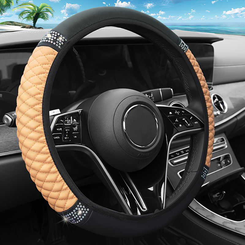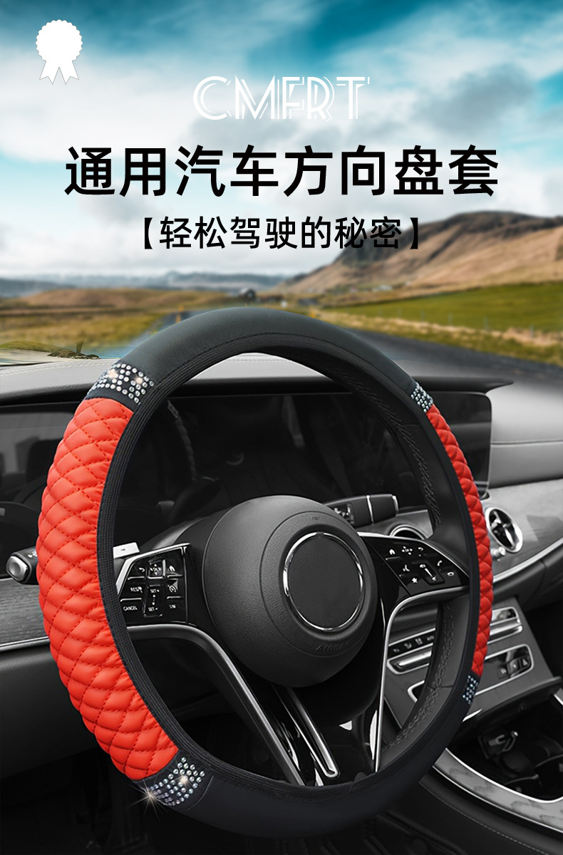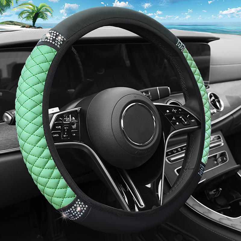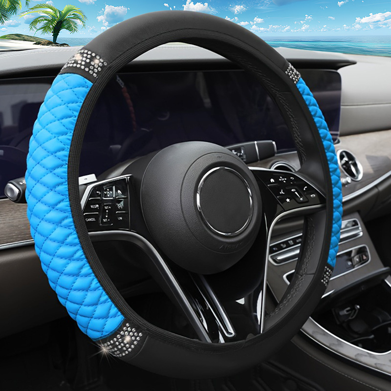 국경 간 폭발 자동차 스티어링 휠 커버 PU 가죽 자수 3 차원 다이아몬드 내부 링 탄성 벨트 자동차 핸들 커버 도매스토어 가기