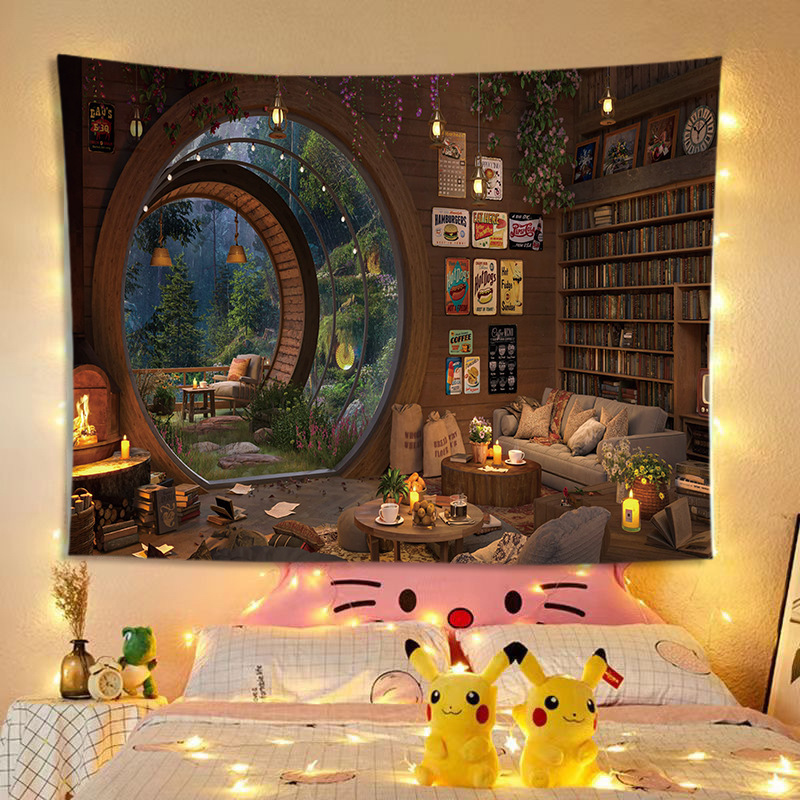 풍경 배경 헝겊 Ins 매달려 천 기숙사 재건 벽 헝겊 침실 침실 장식 개인화 된 간단한 스타일 인터넷 연예인 Tingsheng스토어 가기