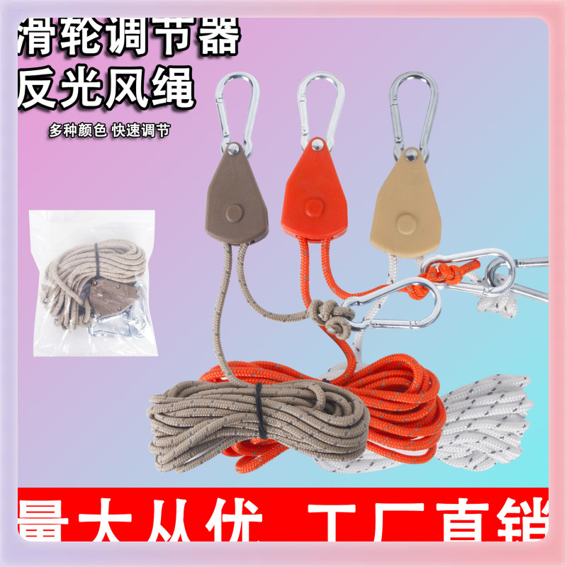✅야외 도르래 조정기 텐트 홀더 금속 리프팅 도르래 반사 바람 로프 대담한 캐노피 우산 로프 4m