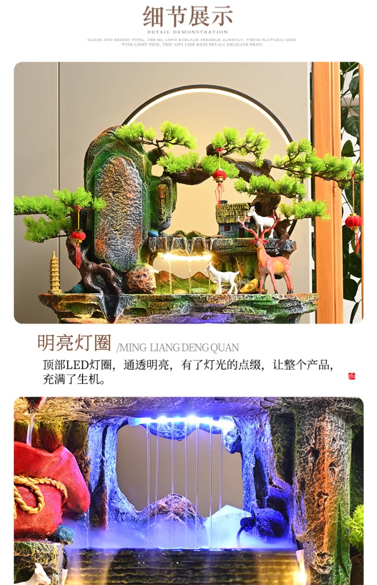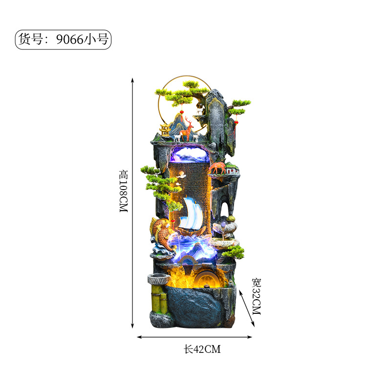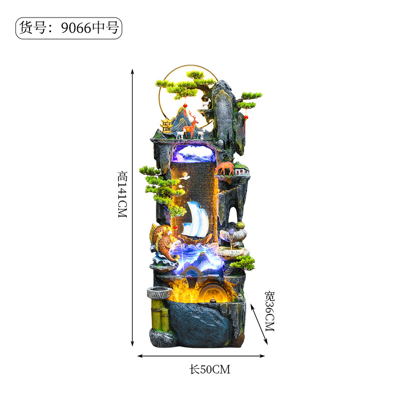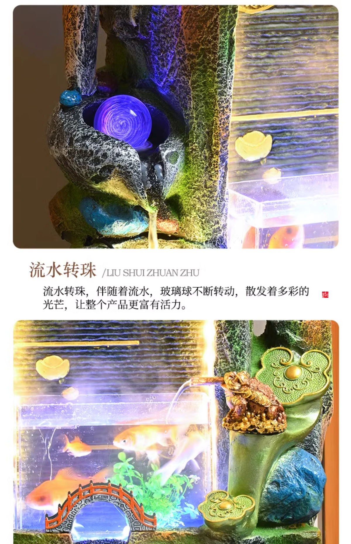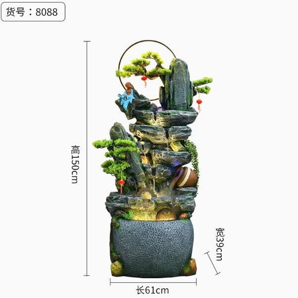 새로운 중국 스타일의 바위 물 분수 풍수 바퀴 거실 실내 물 기능 가습기 포춘 장식 비즈니스 선물