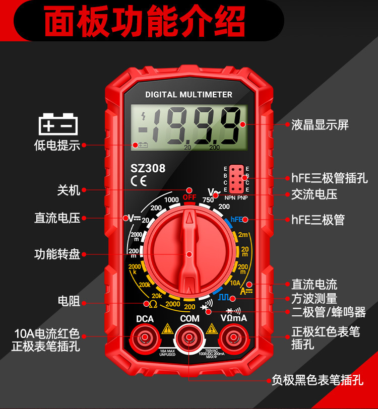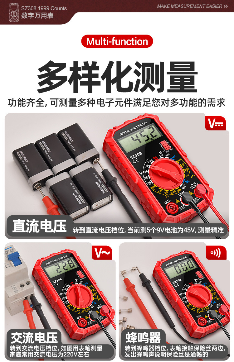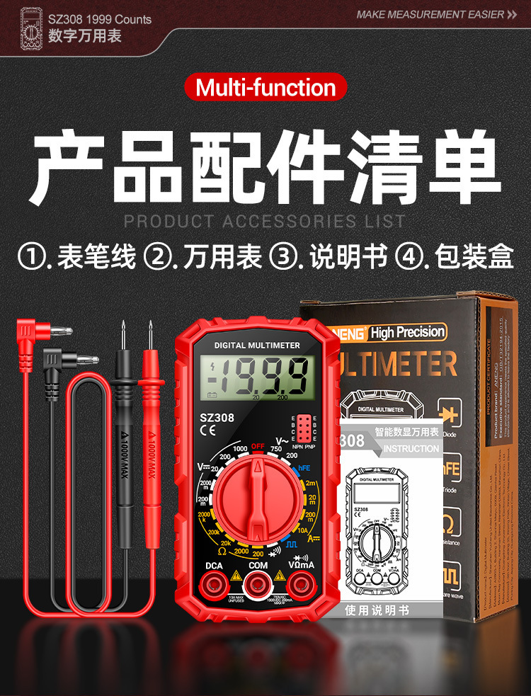 전기 멀티 미터 디지털 고정밀 다기능 작은 휴대용 디지털 디스플레이 미터 전압 측정 유지 보수 가구 다른스토어 가기