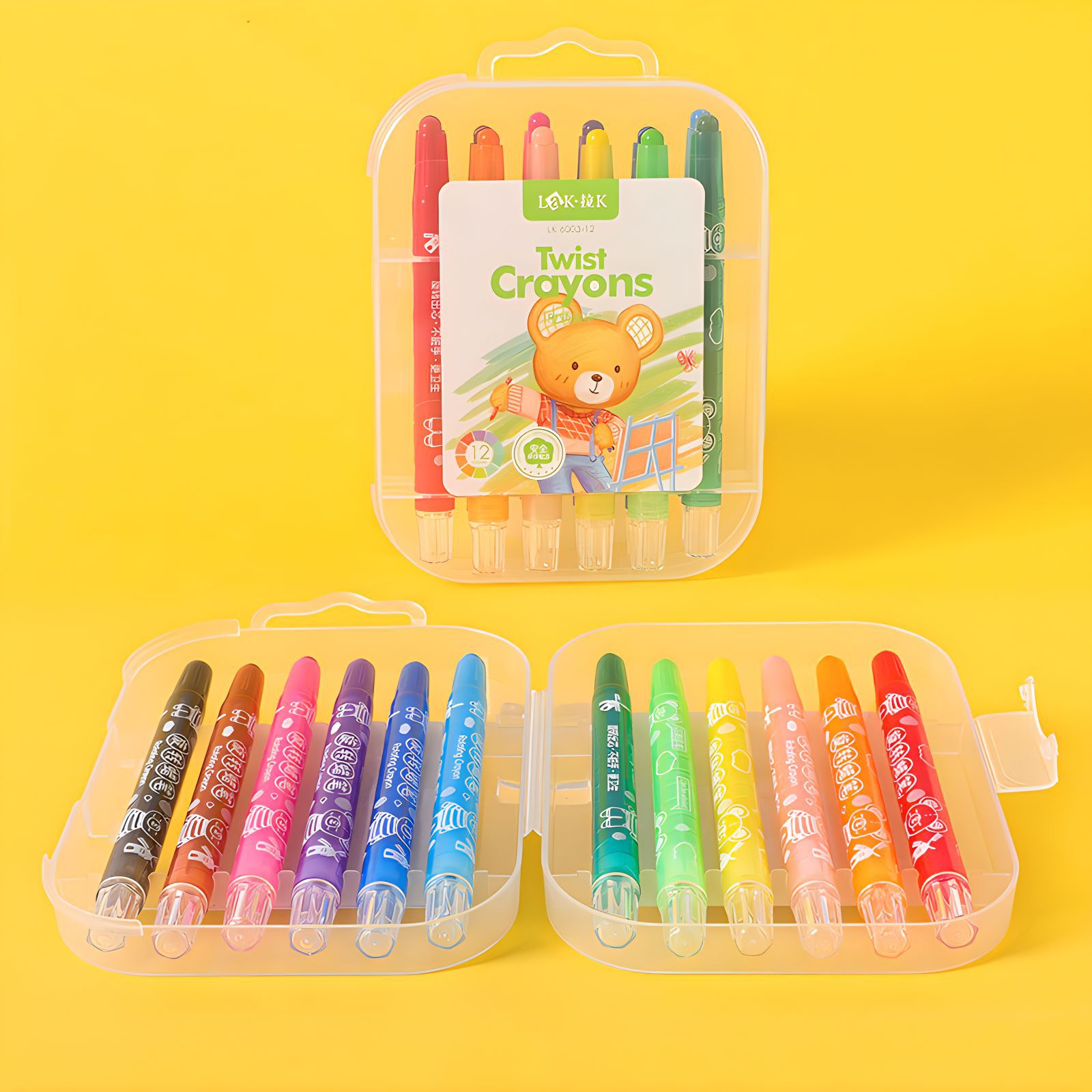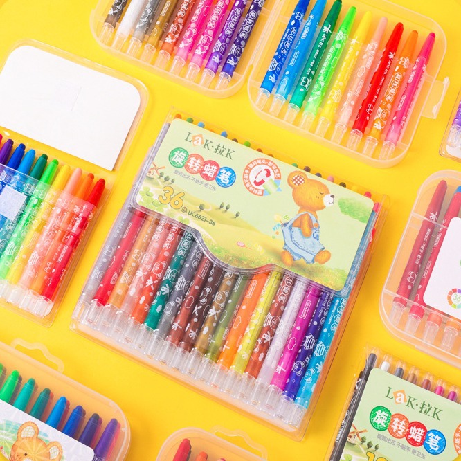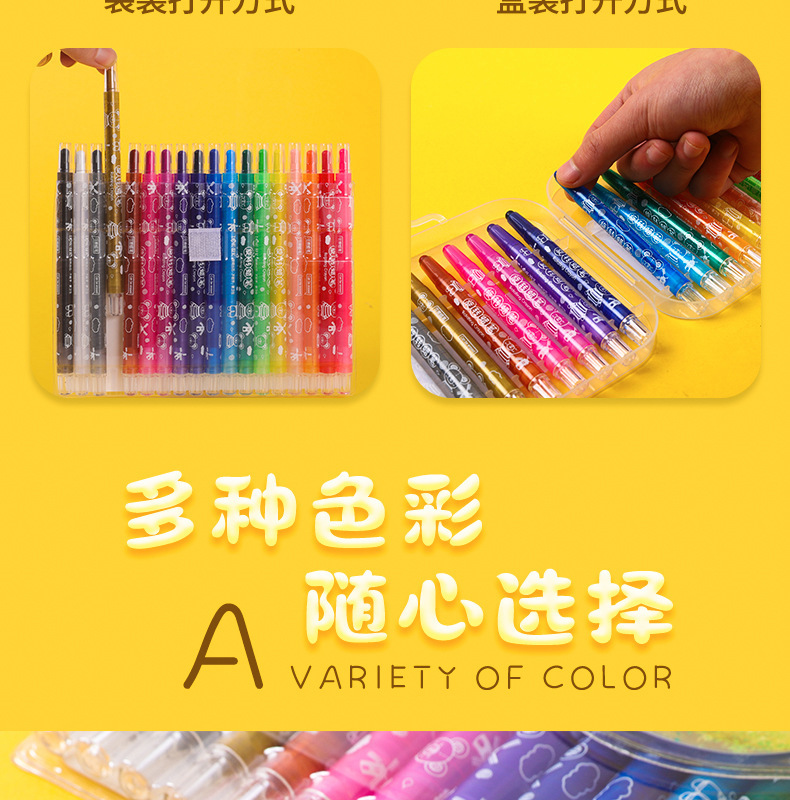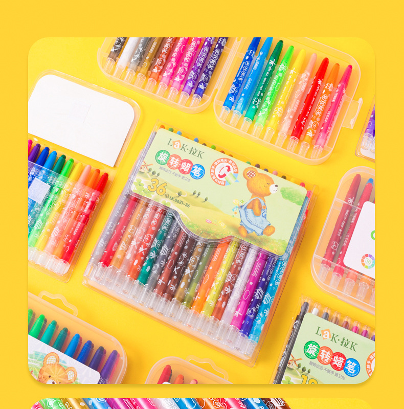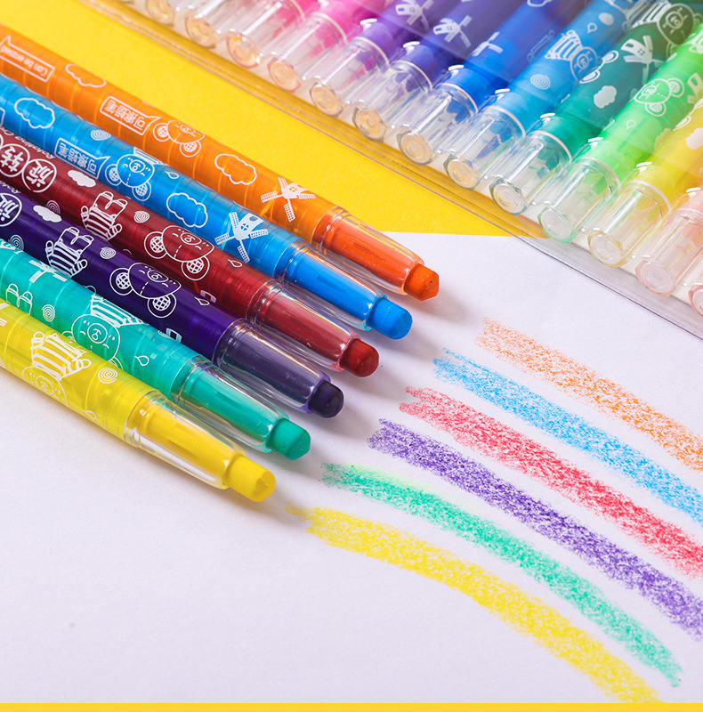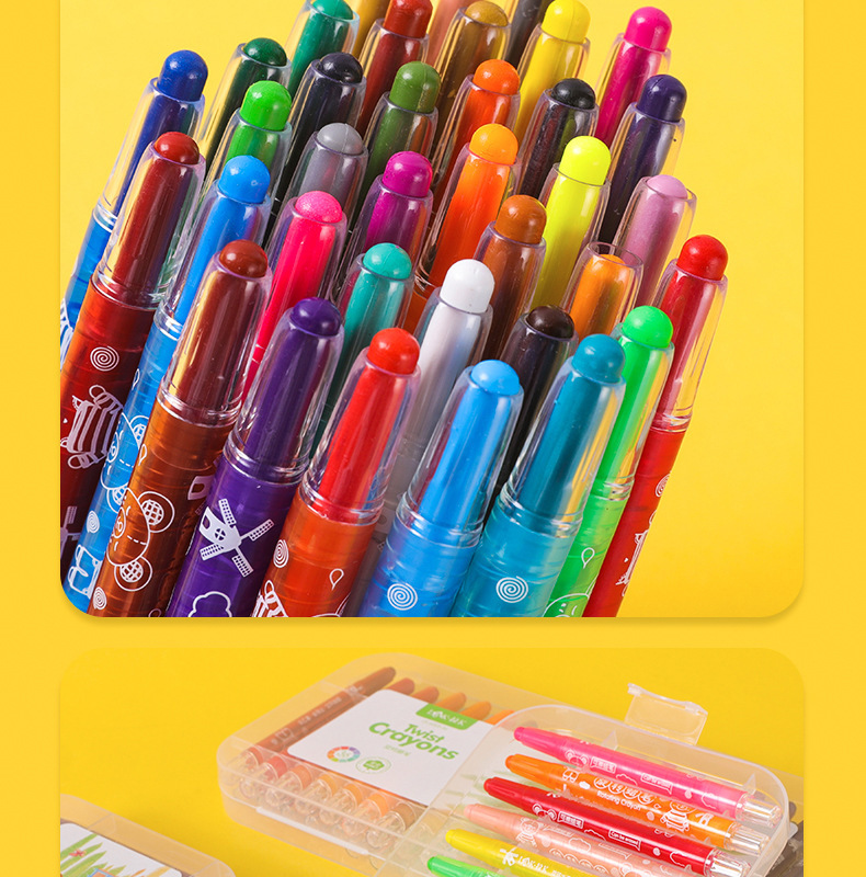 ✅12/18/24/36 컬러 회전 크레용 세척 할 수 없습니다 더러운 손으로 그린 브러쉬 어린이 선물 컬러 펜 세트 배치스토어 가기