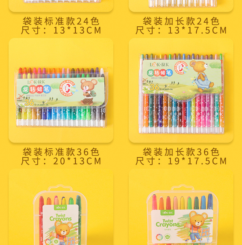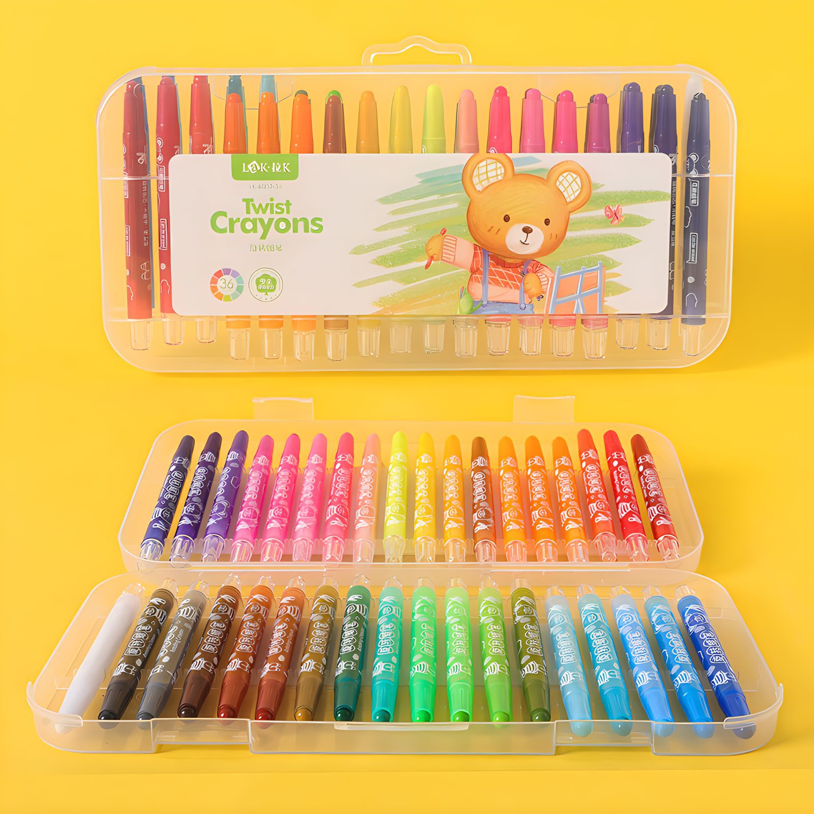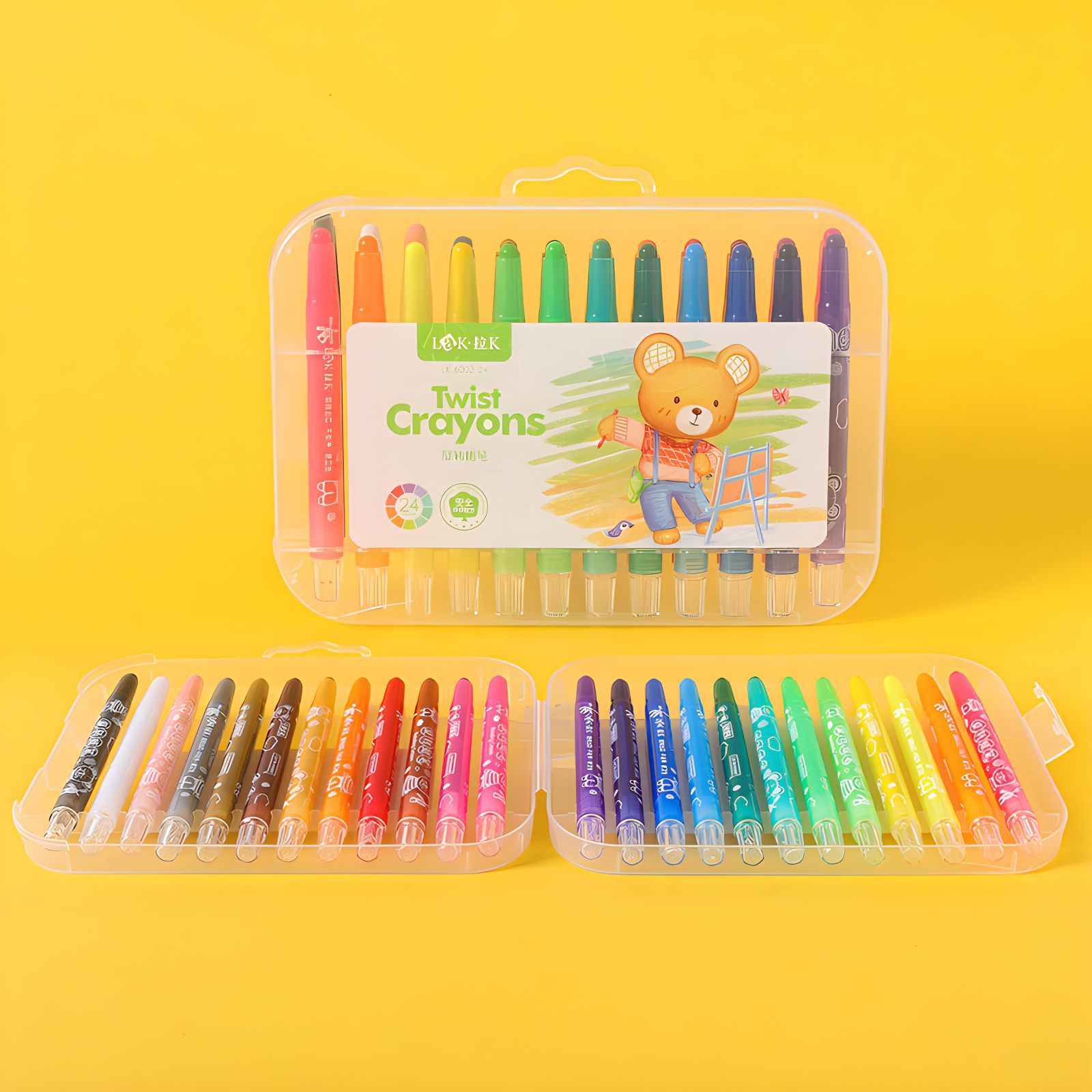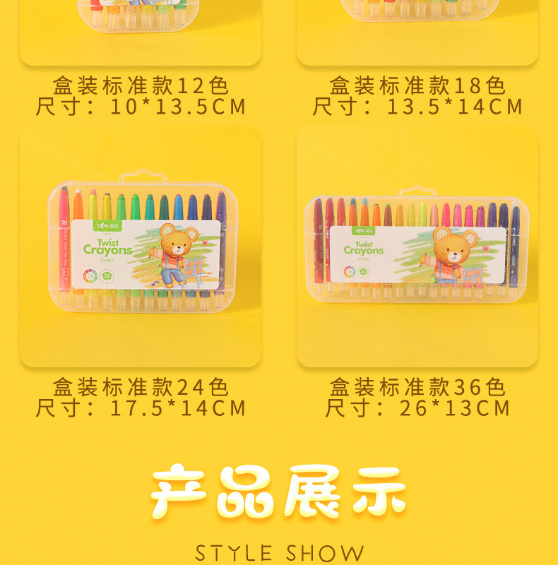 ✅12/18/24/36 컬러 회전 크레용 세척 할 수 없습니다 더러운 손으로 그린 브러쉬 어린이 선물 컬러 펜 세트 배치스토어 가기