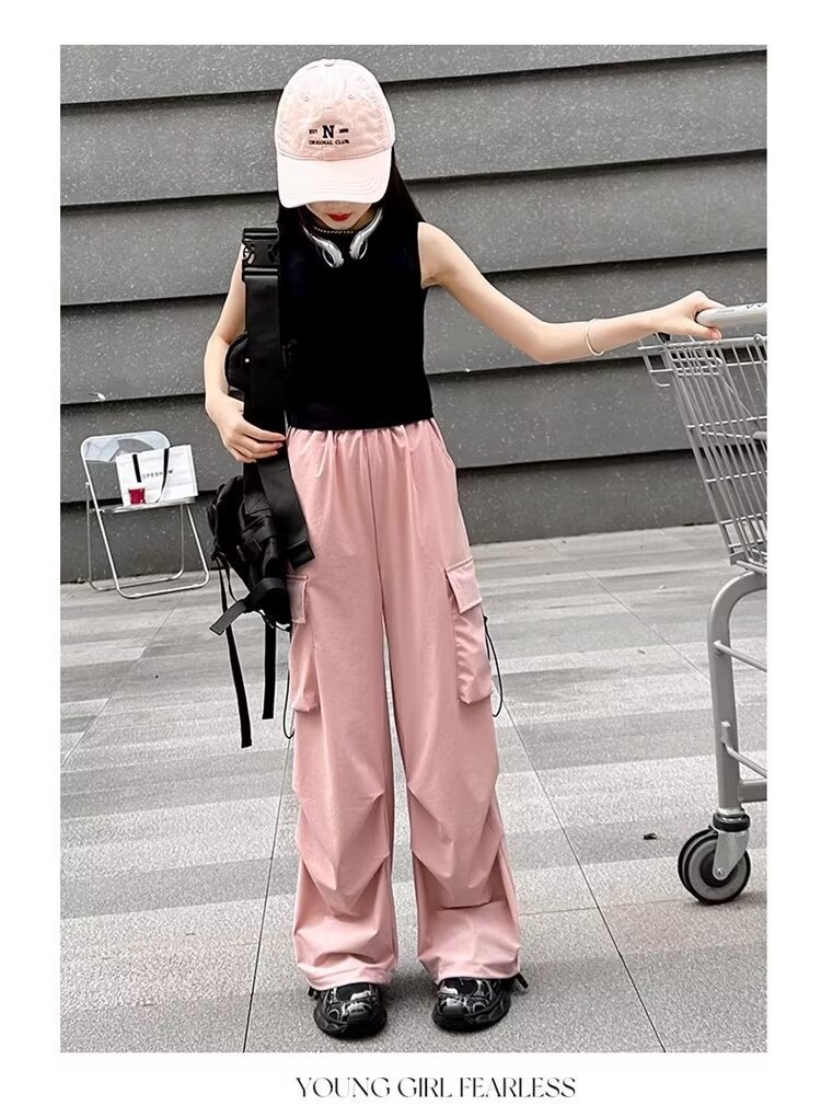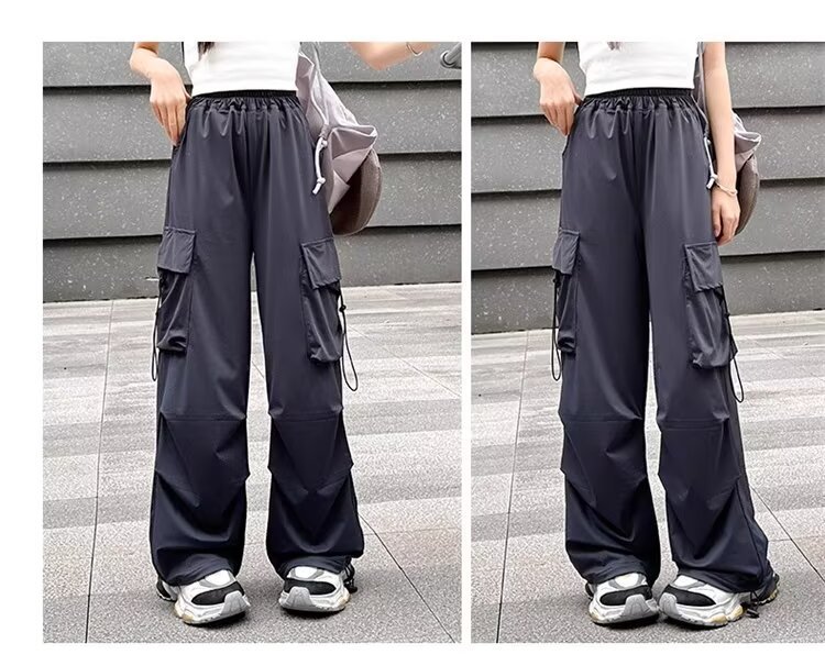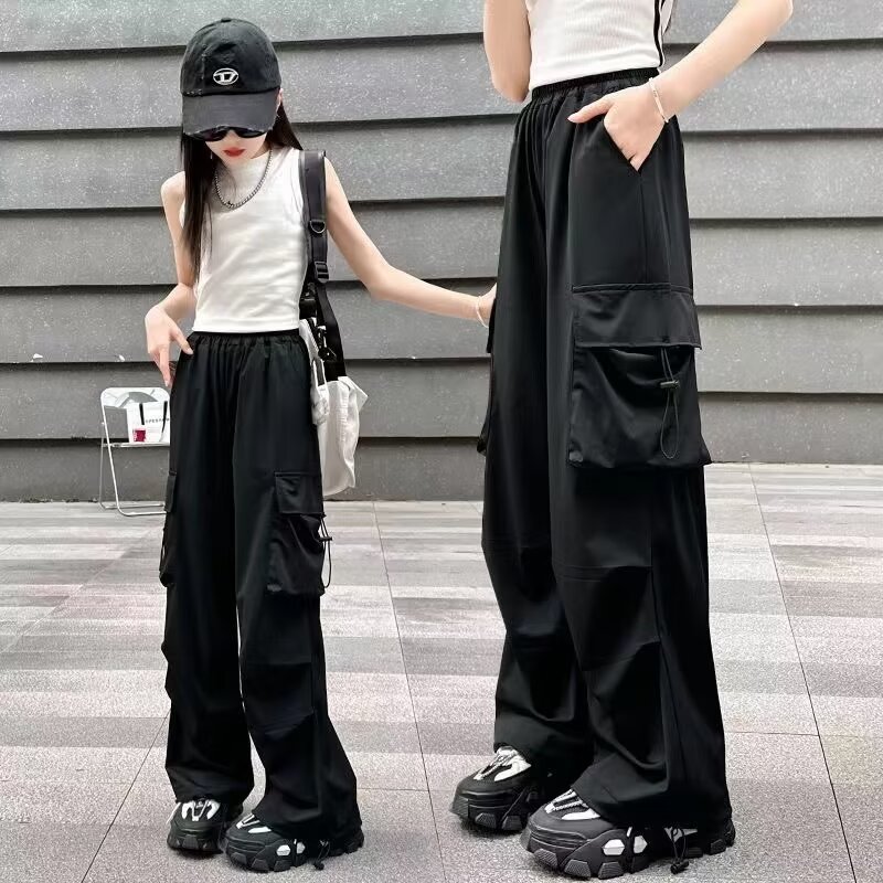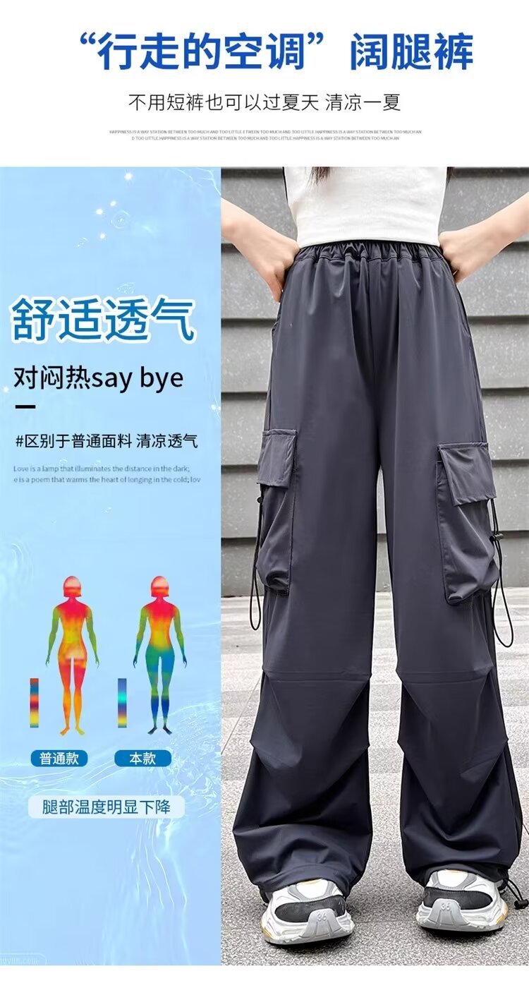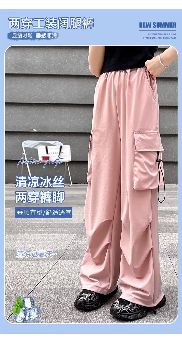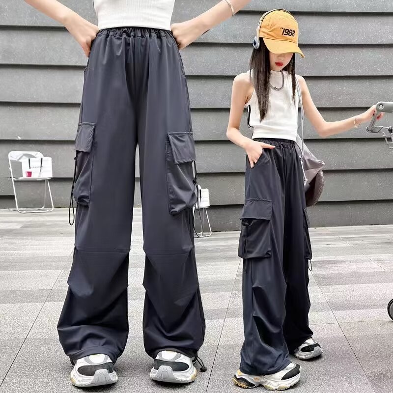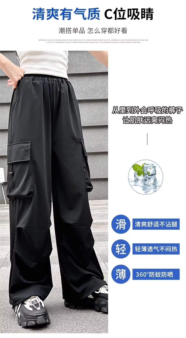 소녀 바지 여름 얇은 2024 새로운 빠른 건조 크록 바지 어린이 안티 모기 바지 소녀 아이스 실크 와이드 레그 바지