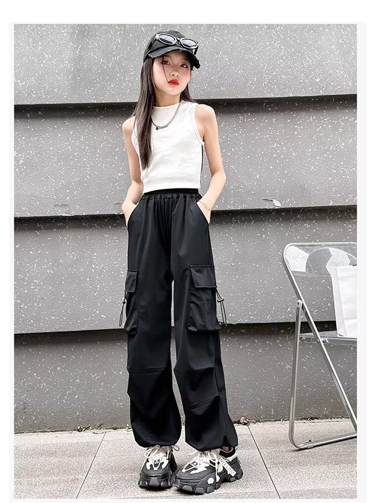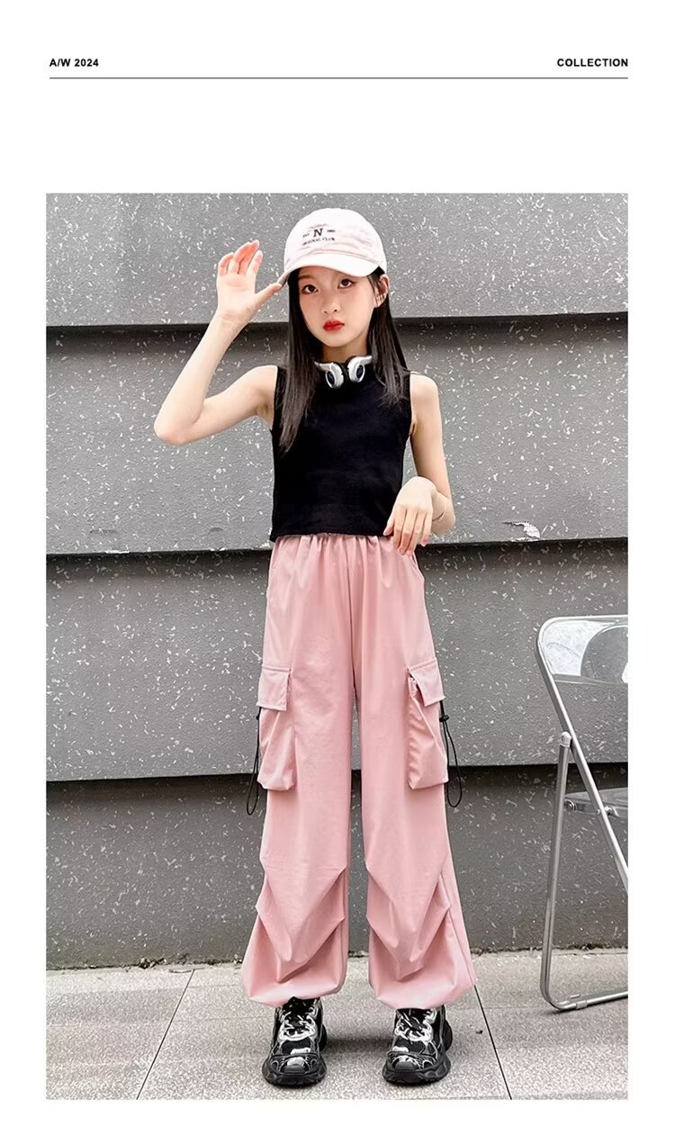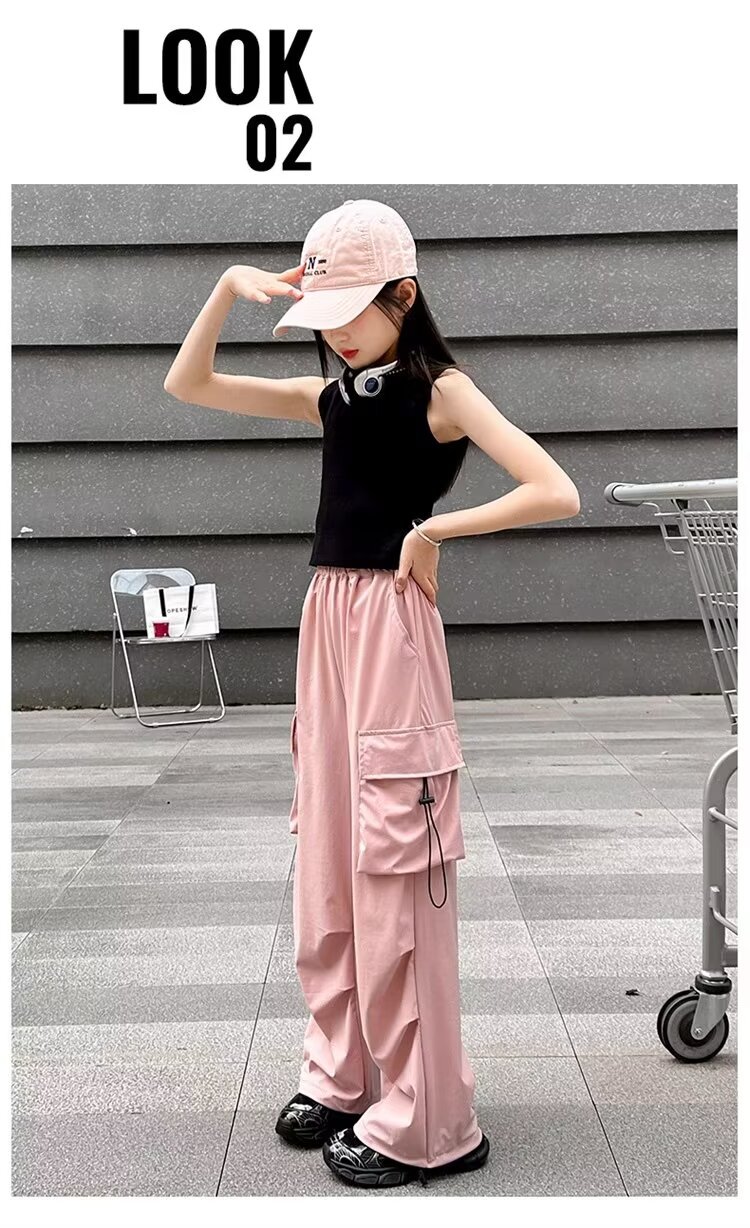 소녀 바지 여름 얇은 2024 새로운 빠른 건조 크록 바지 어린이 안티 모기 바지 소녀 아이스 실크 와이드 레그 바지스토어 가기