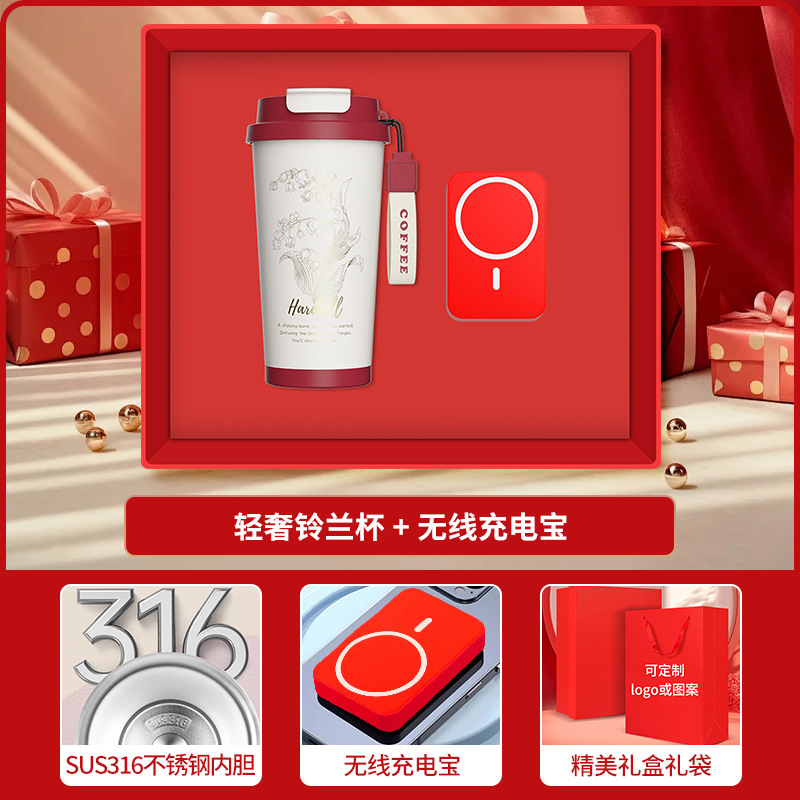 • .▼❈▲▲❈▼레드 - 은방울꽃 컵 무선 충전 보조배터리 2종 세트▼❈▲▲❈▼