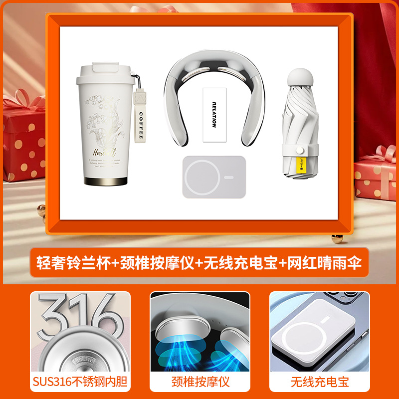 • ▼❈▲▲❈▼화이트 - 은방울꽃 컵 충전식 경추 마사지기 무선 충전 보조 배터리 인싸템 우산 4종 세트▼❈▲▲❈▼