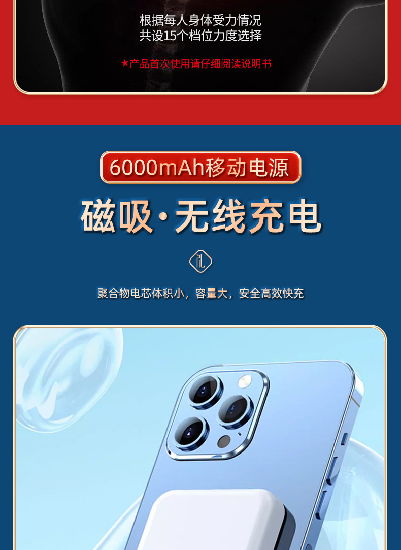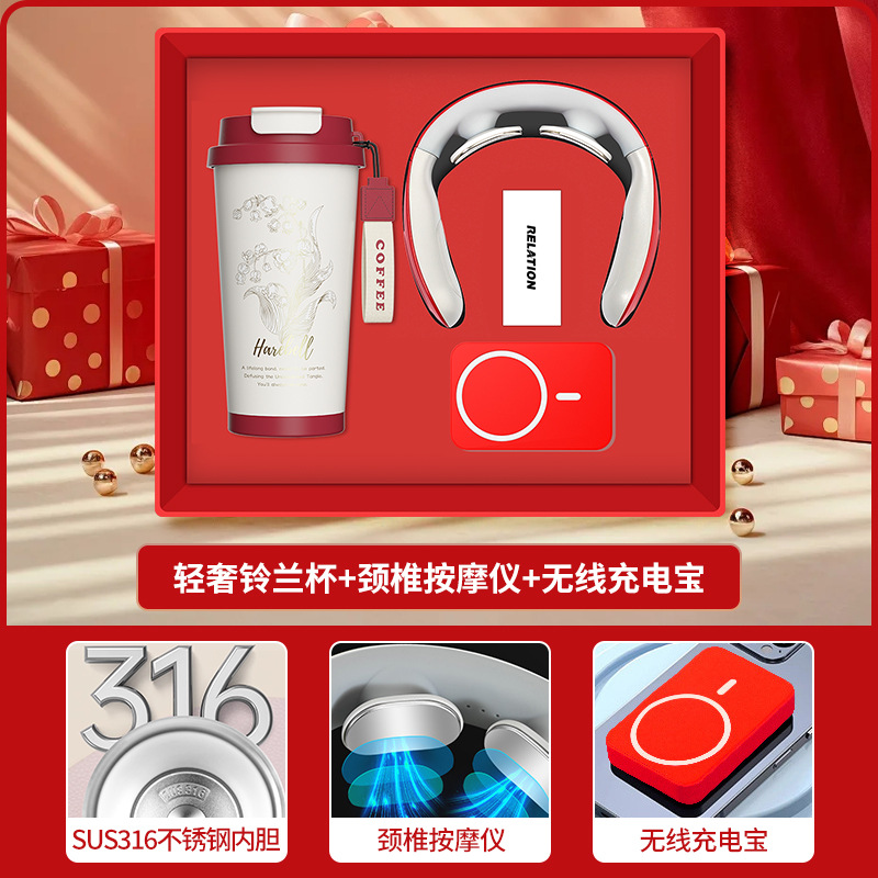 • ▼❈▲▲❈▼레드 - 은방울꽃 컵 충전식 경추 마사지기 무선 충전 보조 배터리 3종 세트▼❈▲▲❈▼