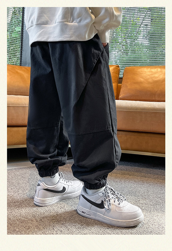 소년 바지 봄과 가을 2023 새로운 러피 잘 생긴 튀긴 거리 어린이 스포츠 바지 큰 소년 바지 가을 옷스토어 가기