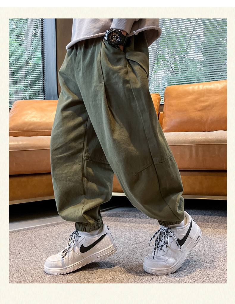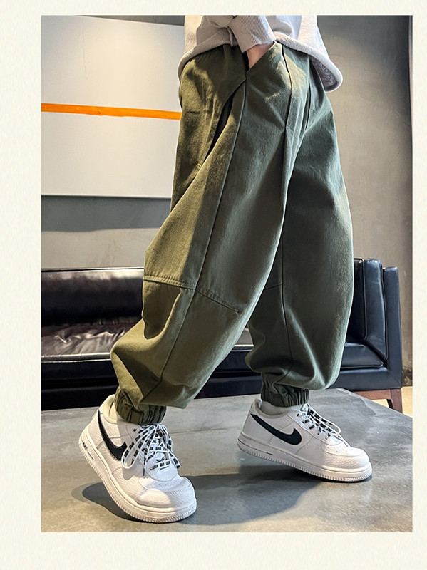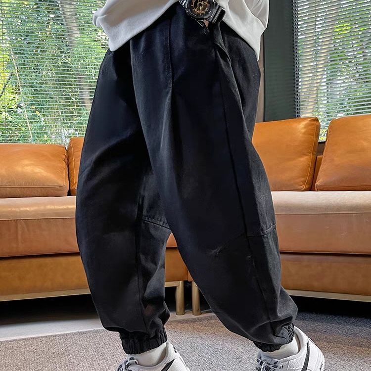 소년 바지 봄과 가을 2023 새로운 러피 잘 생긴 튀긴 거리 어린이 스포츠 바지 큰 소년 바지 가을 옷