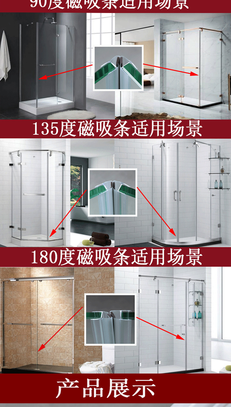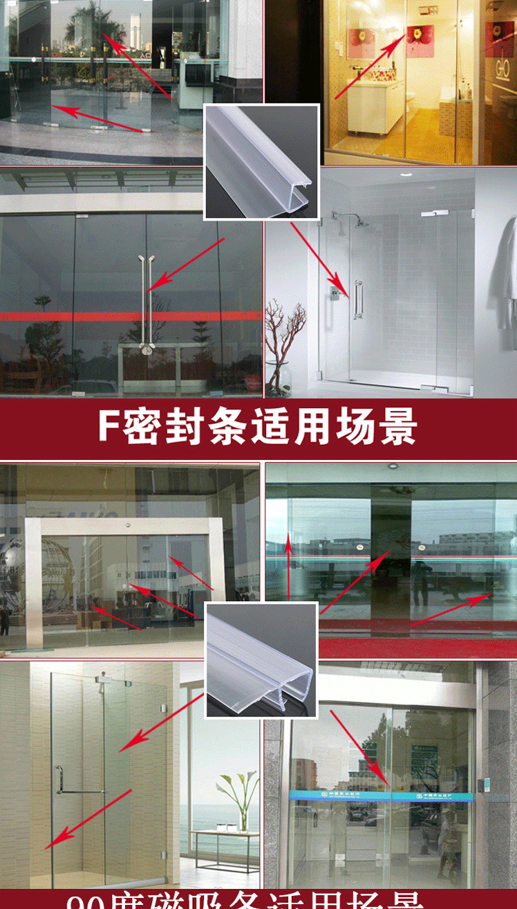 두꺼운 F h 형 프레임리스 유리 도어 밀봉 스트립 방풍 방수 샤워 룸 마그네틱 흡입수 차단 고무 스트립 U 형 충돌 방지 스트립